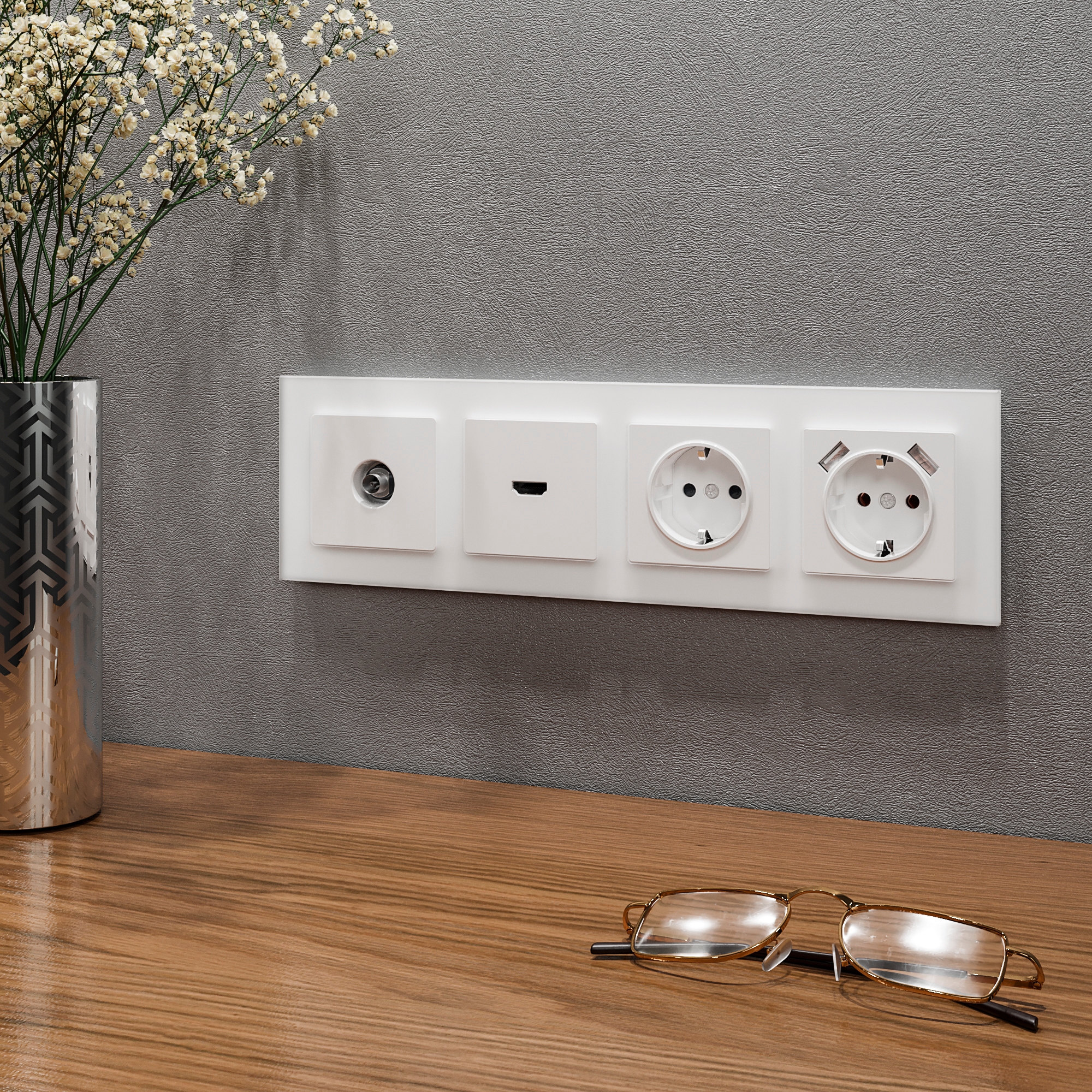 Розетки на белой стене