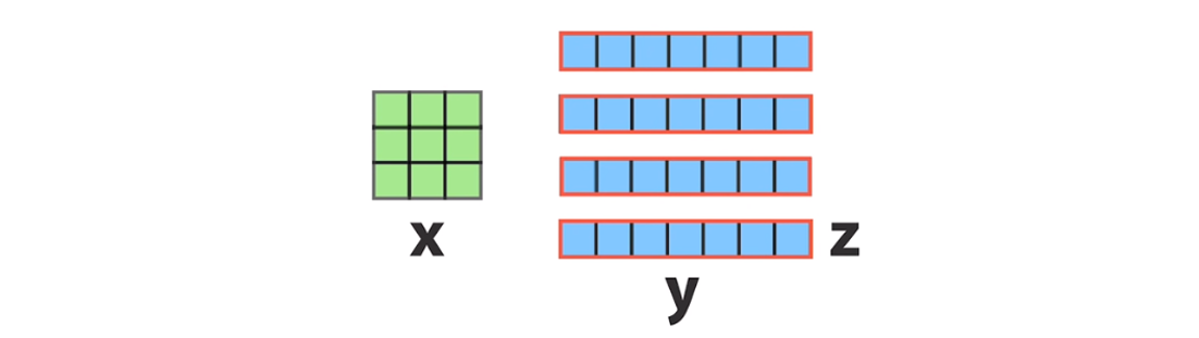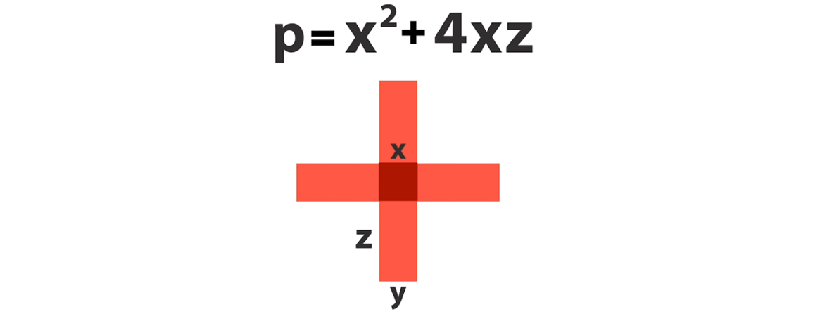 В этом случае длина стороны квадрата x равна длине стороны y одного из прямоугольников. Это означает, что мы можем заменить y на x и вытащить его за скобку: p = x (x + 4z).