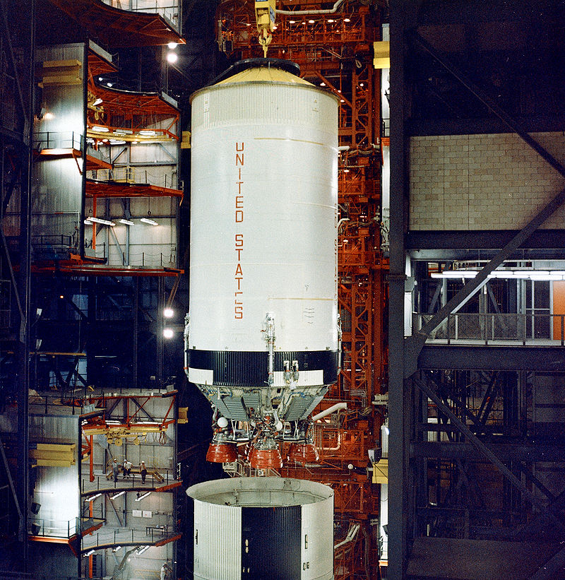 Вторая ступень была водородной с пятью двигателями J-2.