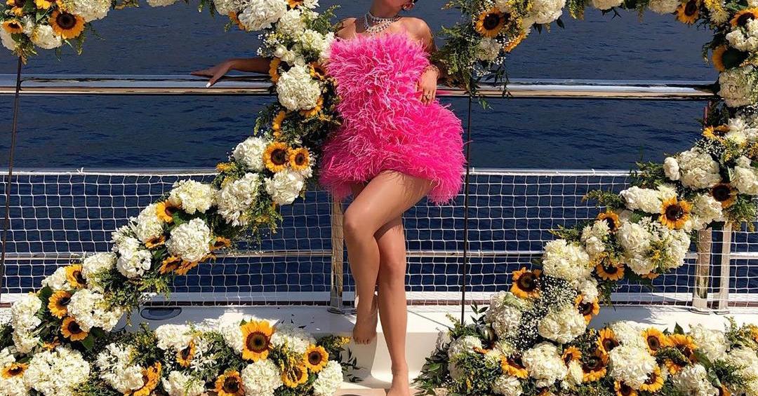 Кайли Дженнер показала фото в розовом платье из перьев ...