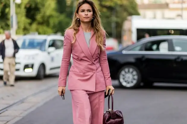 Розовый брючный костюм женский (139 фото)
