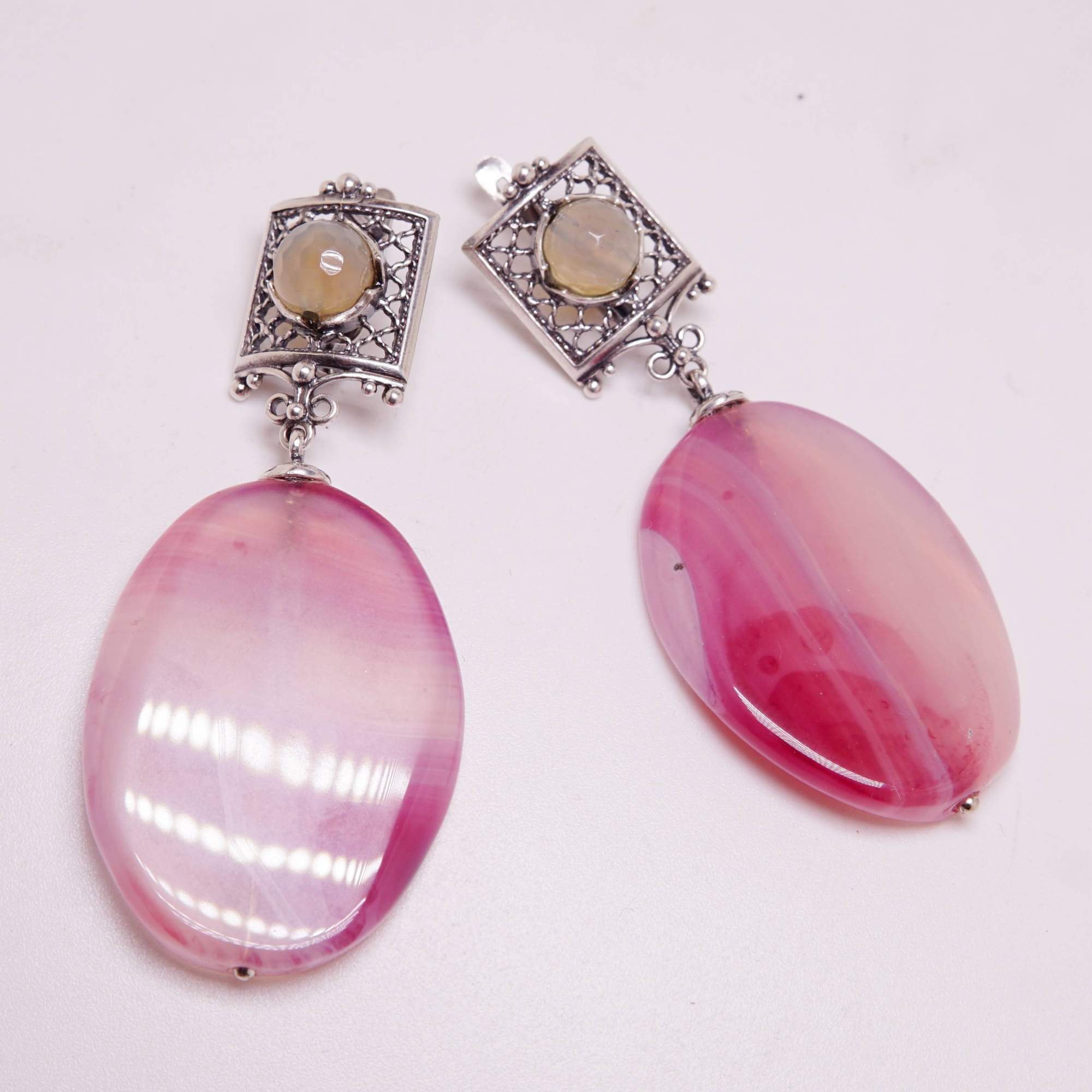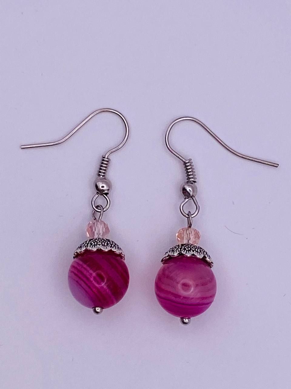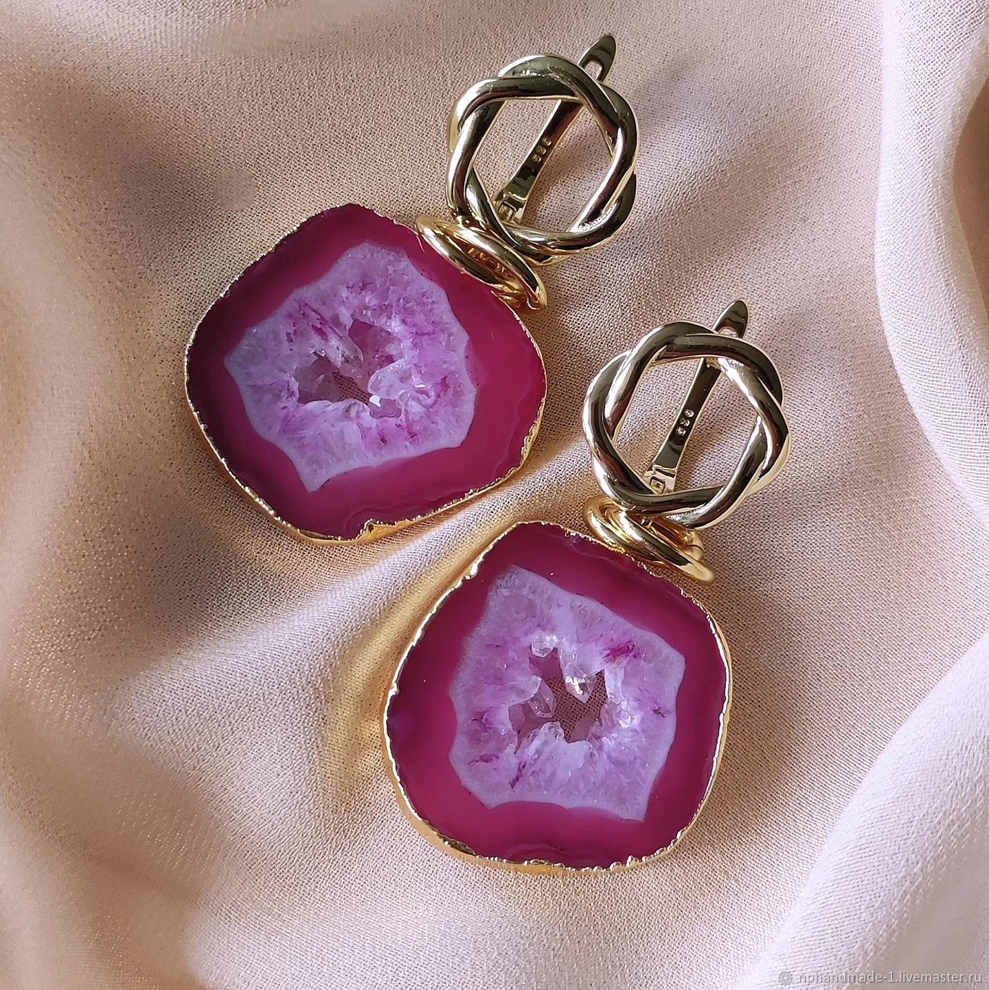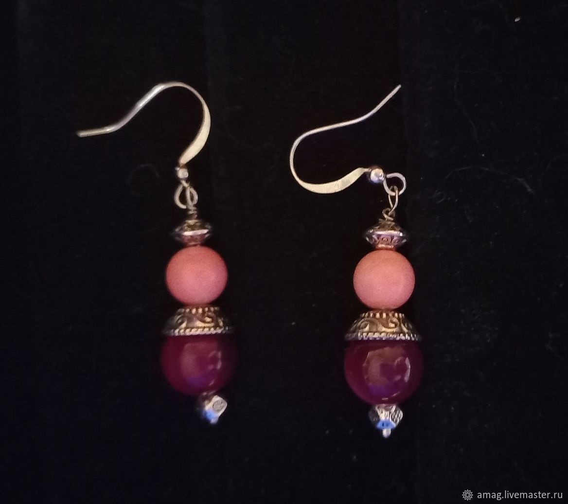 Розовые агаты серьги