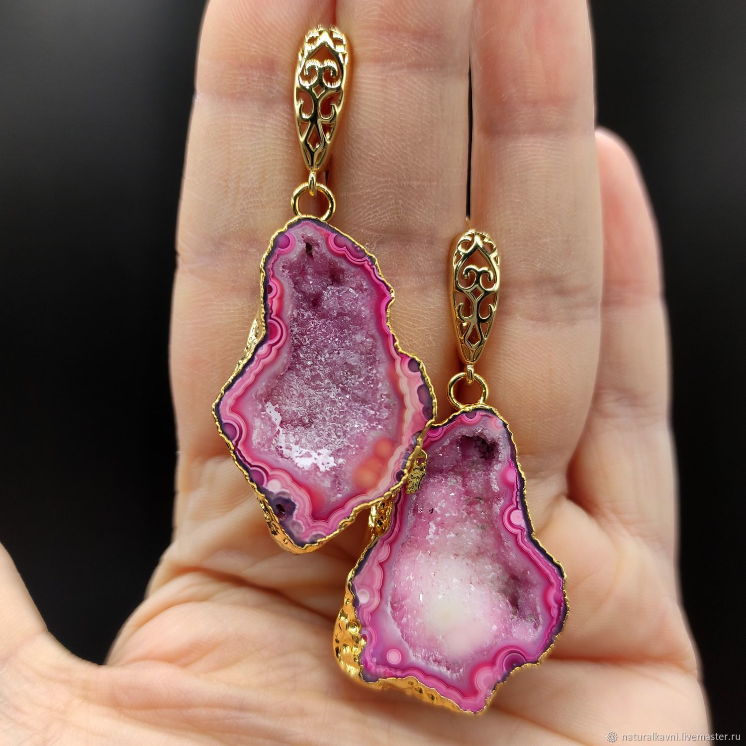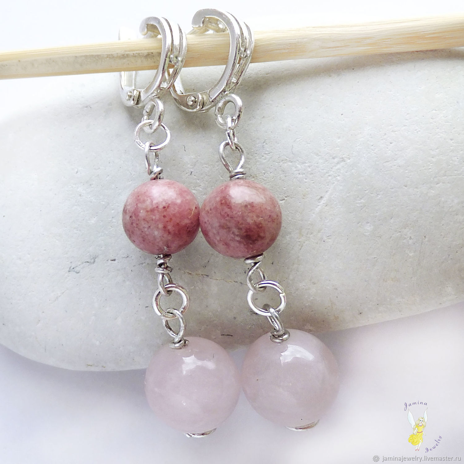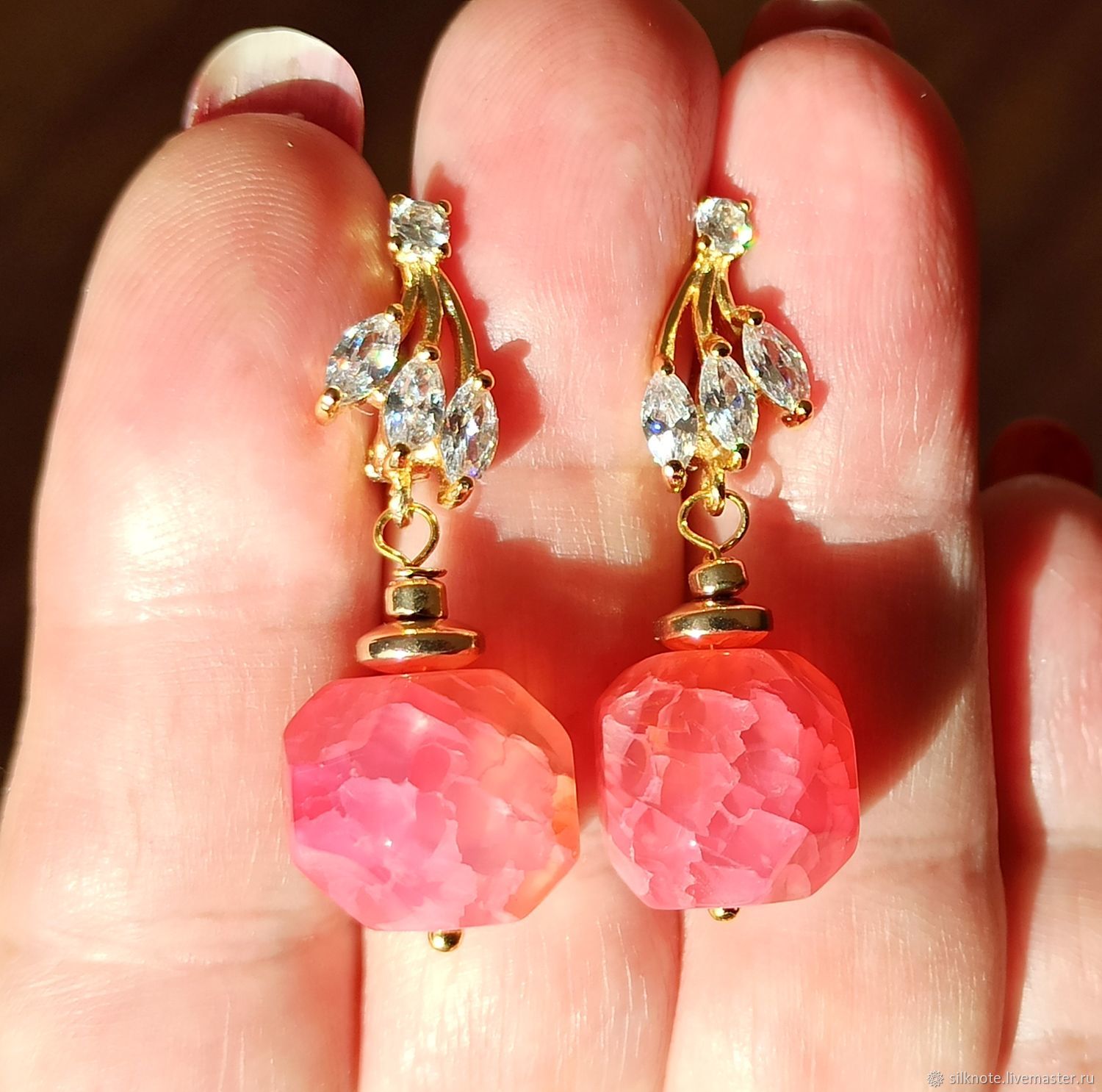 Розовые агаты серьги