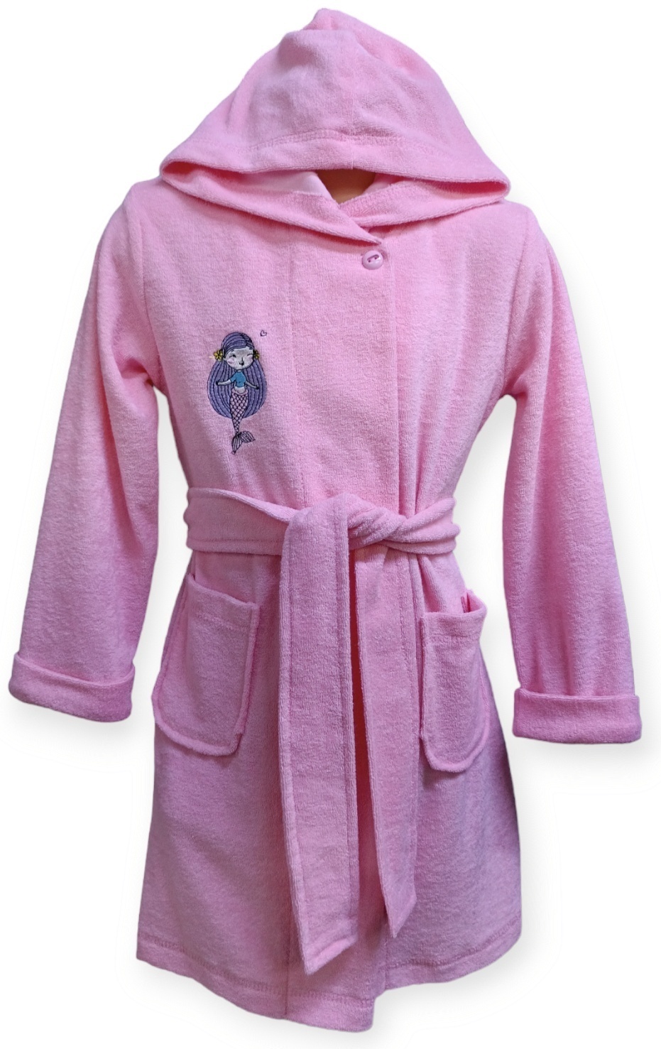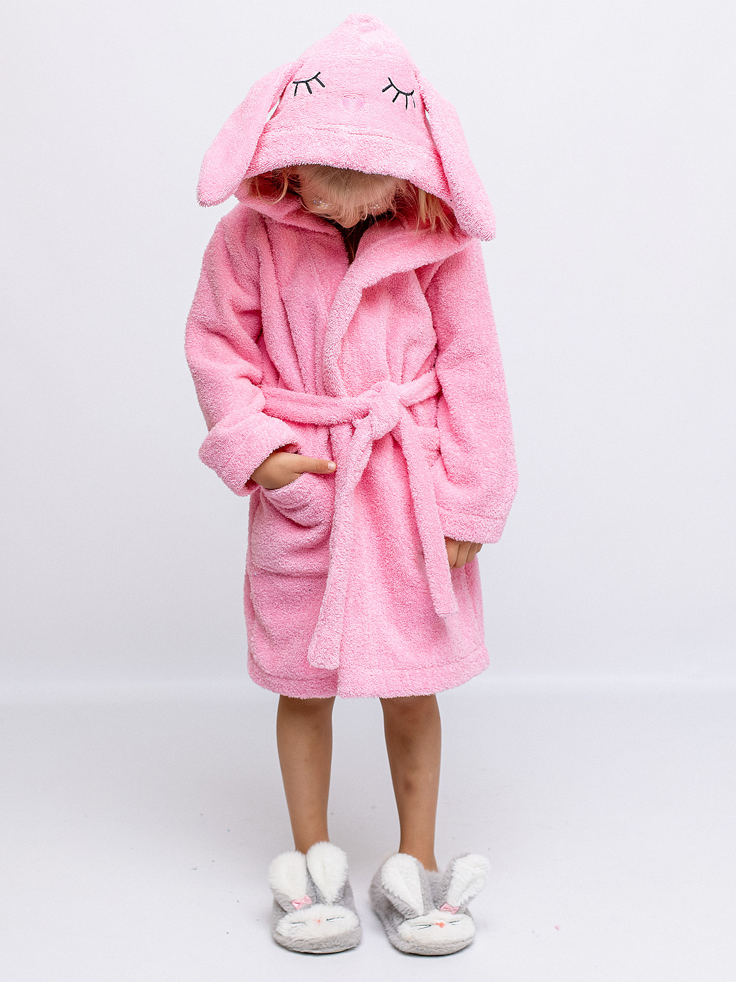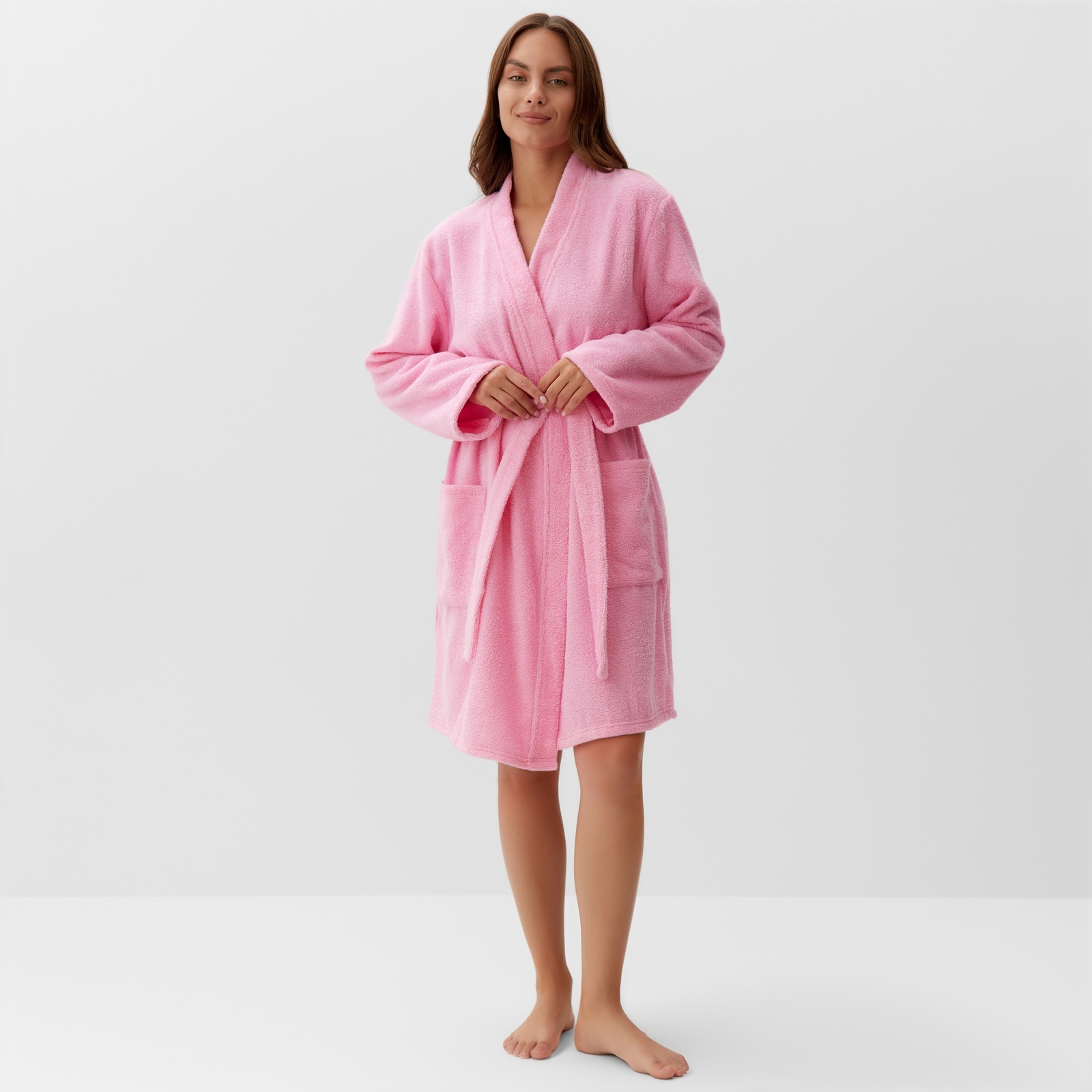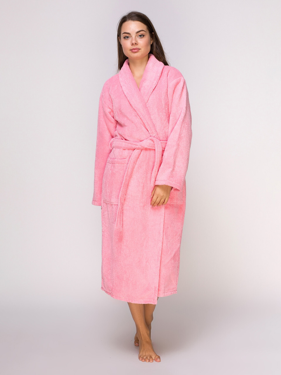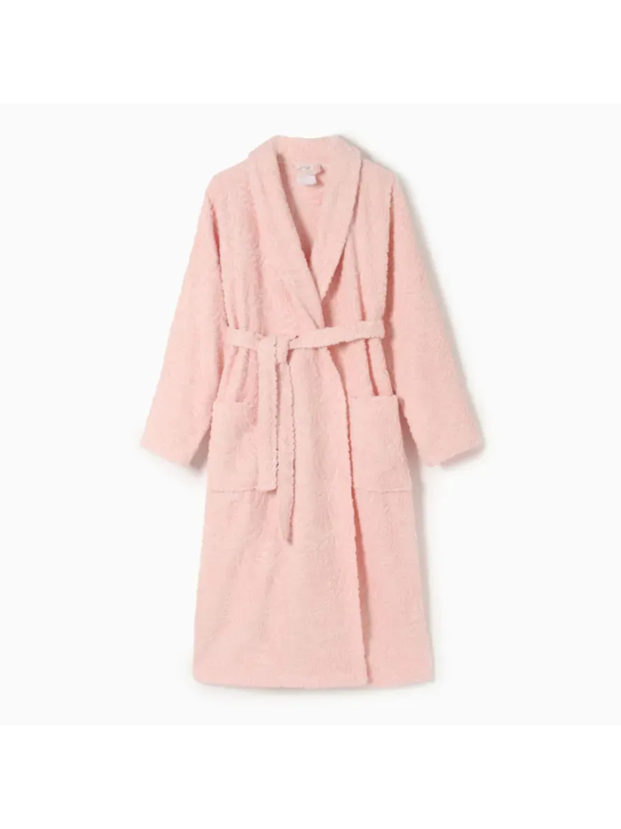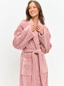 Розовый махровый халат