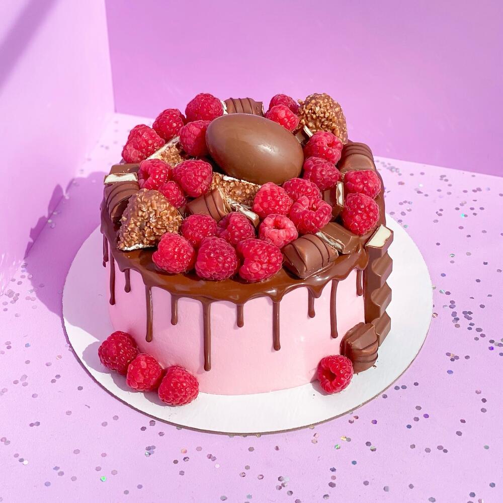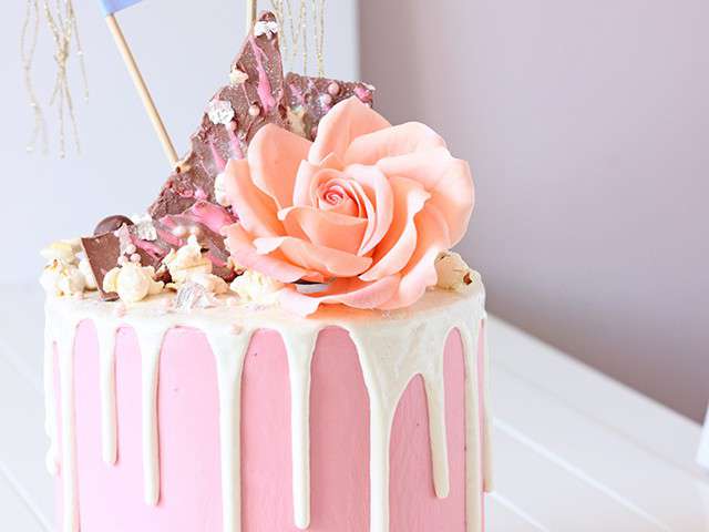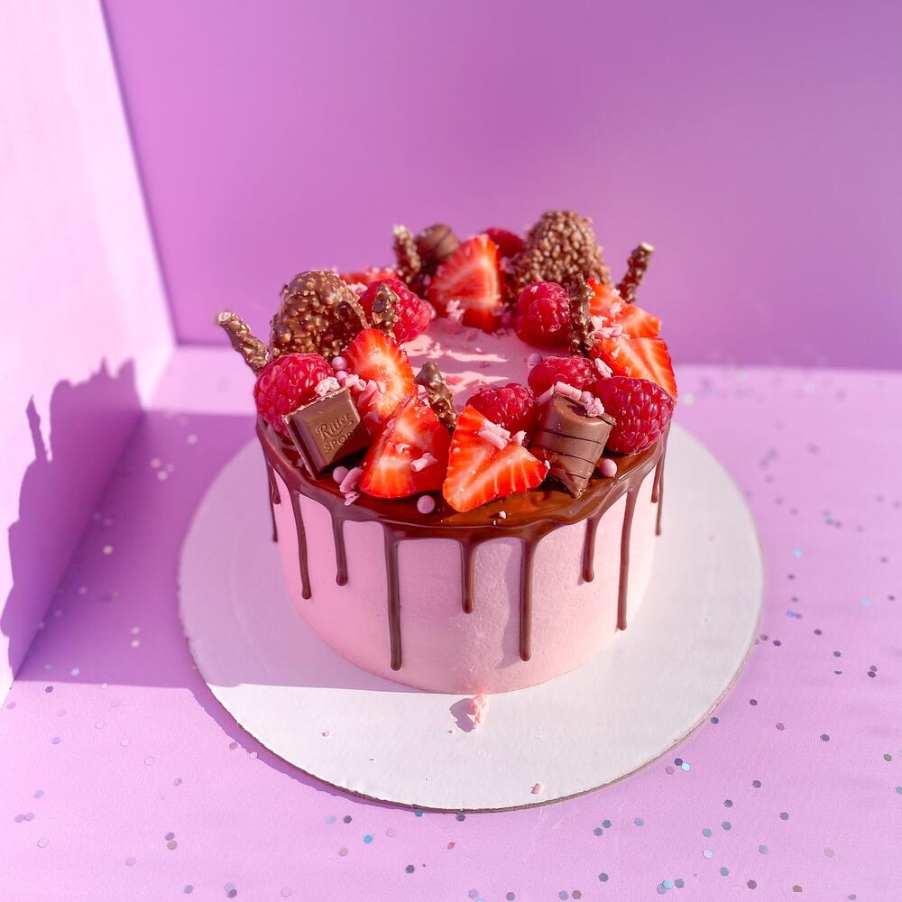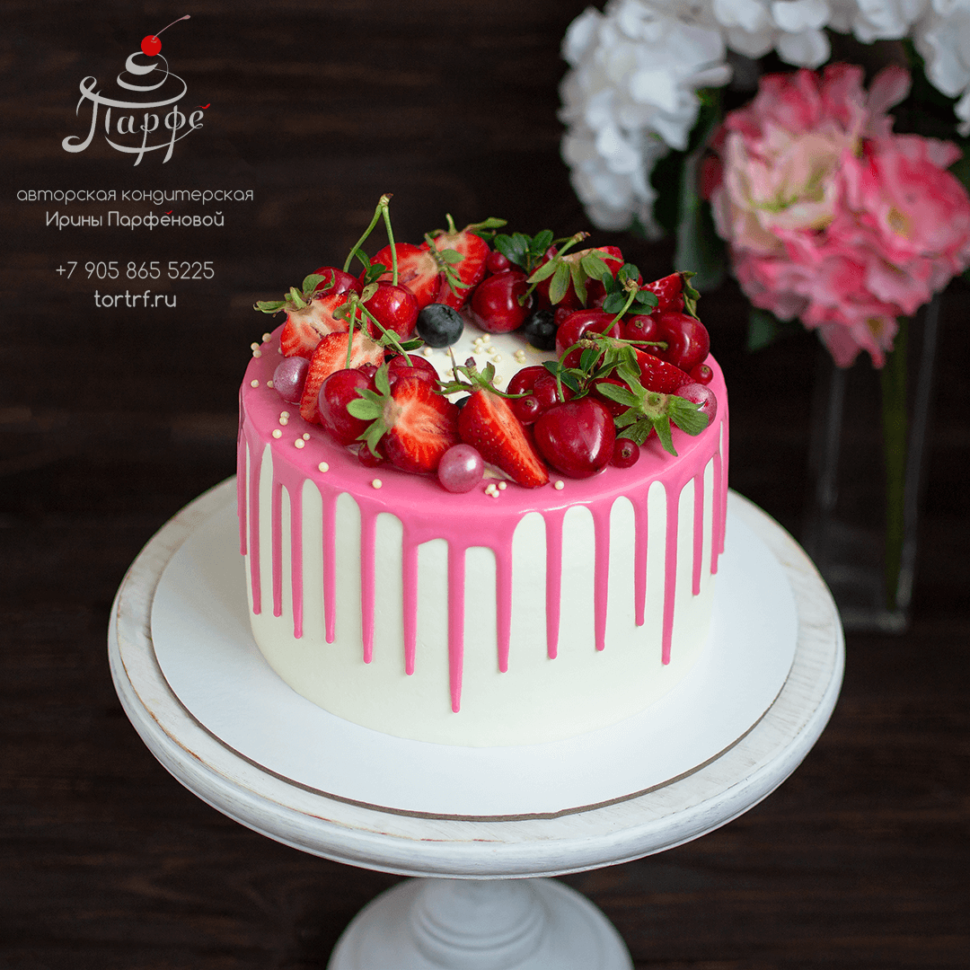 Розовый торт с подтеками