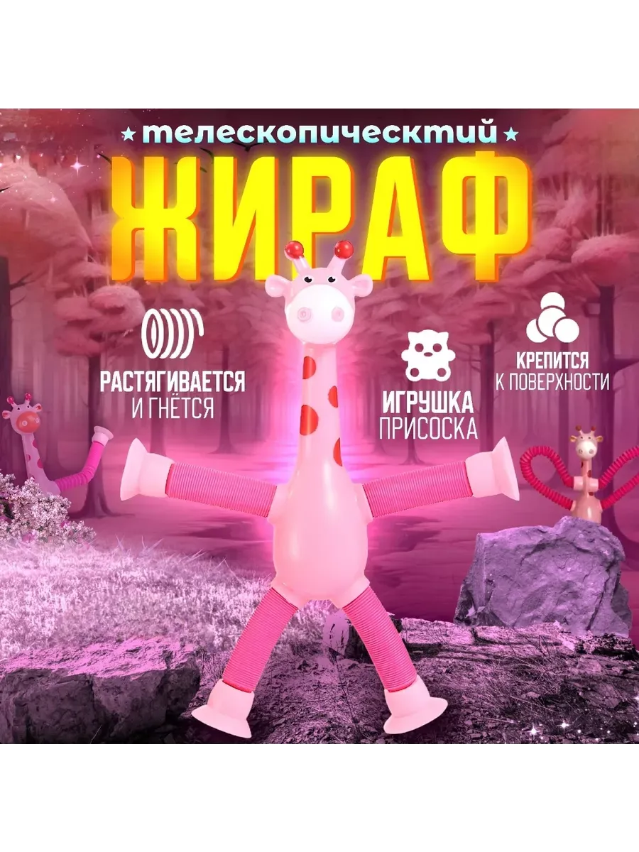 Розовый жираф карманный