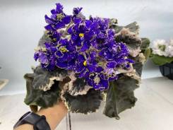 Фиалка РС-Королева Ночи . Цветок: Синие цветы с обиными белыми штрихами фентези, в прохладных условиях хорошая салатовая рюшь Розетка: пестролистные темные листья