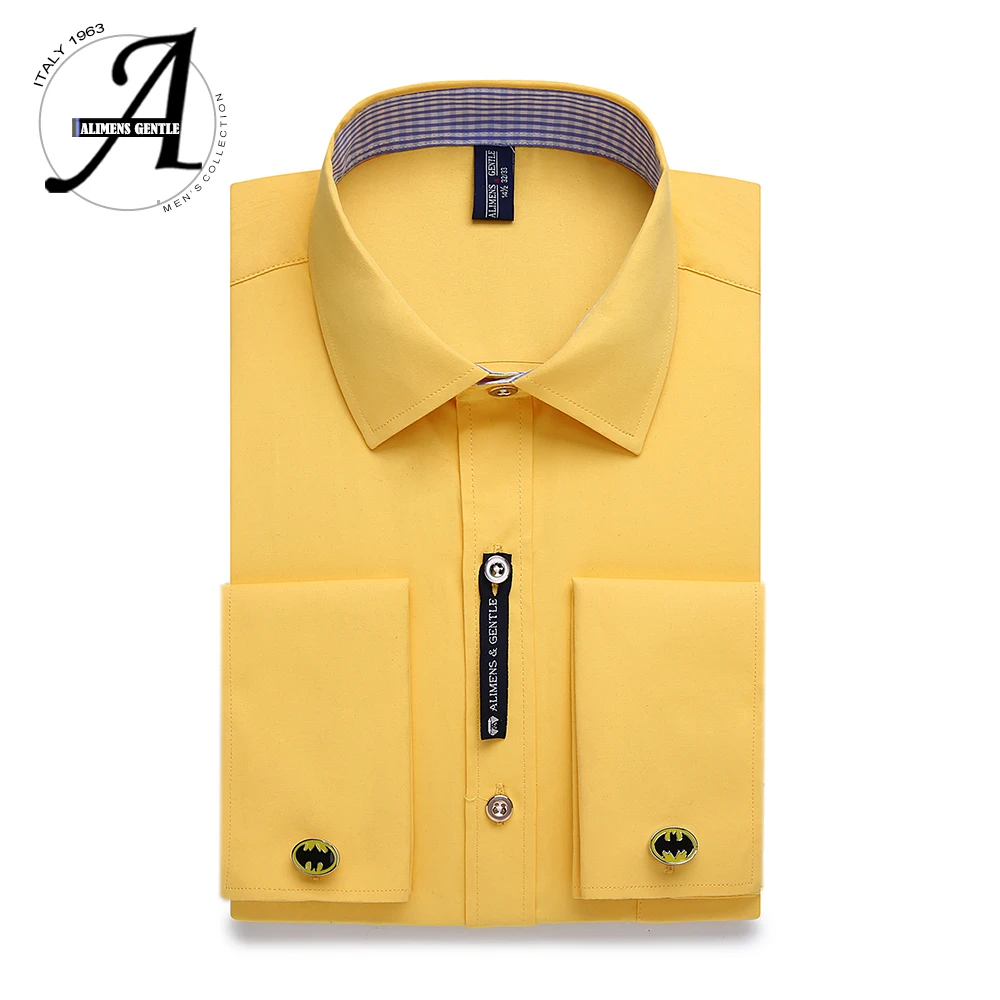 ✅ Али Для мужчин s и нежный Для мужчин s французская запонка платье рубашка Для мужчин с длинными рукавами Одноцветный полосатый стильная запо...