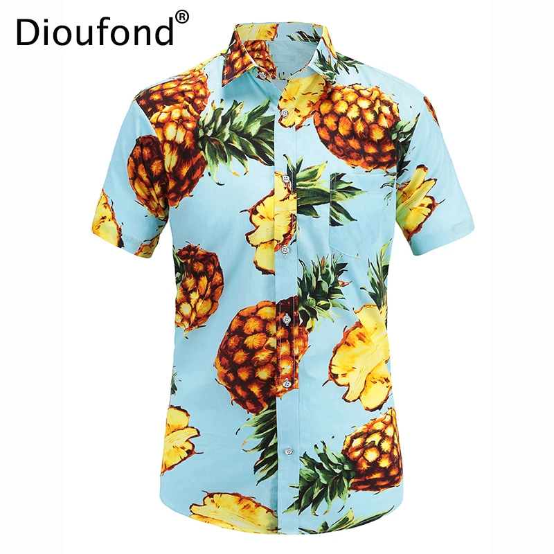 ✅ Dioufond Для Мужчин's Повседневное короткий рукав Летняя гавайская рубашка Алоха Для мужчин Button-Down Floral ананас рубашки с принтом 2018 Новое S-3XL