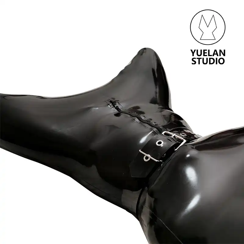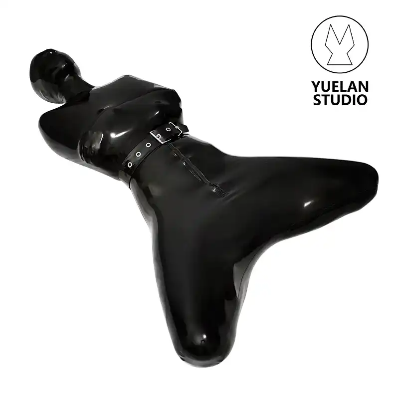 Latex full body bag is glued of sheet latex and is absolutely vacuum. It has an aperture which makes it possible to create vacuum inside. There is also a glued tube made of latex that serves as a valve which can be connected to the vacuum cleaner. Through this latex tube air is pumped out of the body bag after that it is tied up and doesn’t let air pass inside.