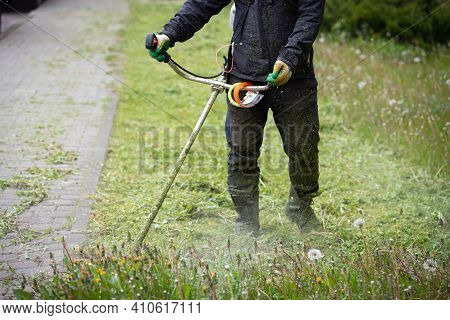 Worker, rubber boots and gloves, stomping