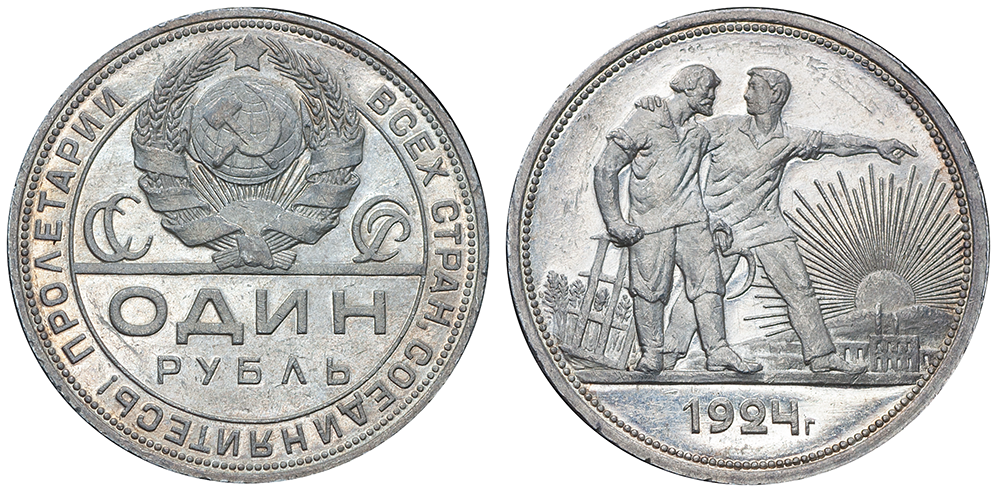 1 рубль 1924 года, стоимость монеты СССР по аукционам