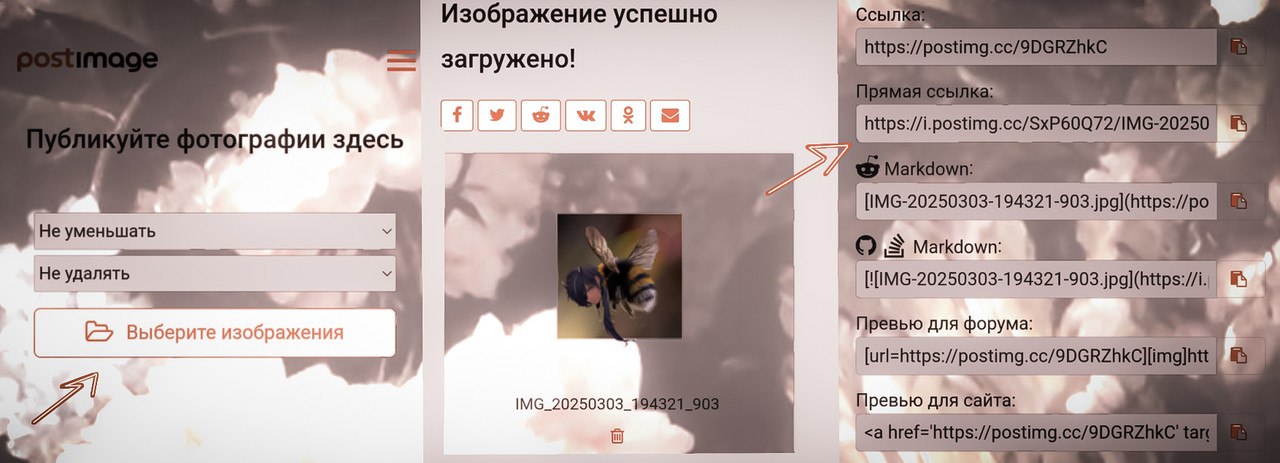 Мне больше всего нравится делать это через postimages.org. Нужно добавить любое фото из галереи, скопировать прямую ссылку и вуаля. У вас может не сработать если вы не нажали enter(переход на следующую строку). Чтобы удалить фото перейдите на начало абзаца ниже и нажимайте кнопку удалить.