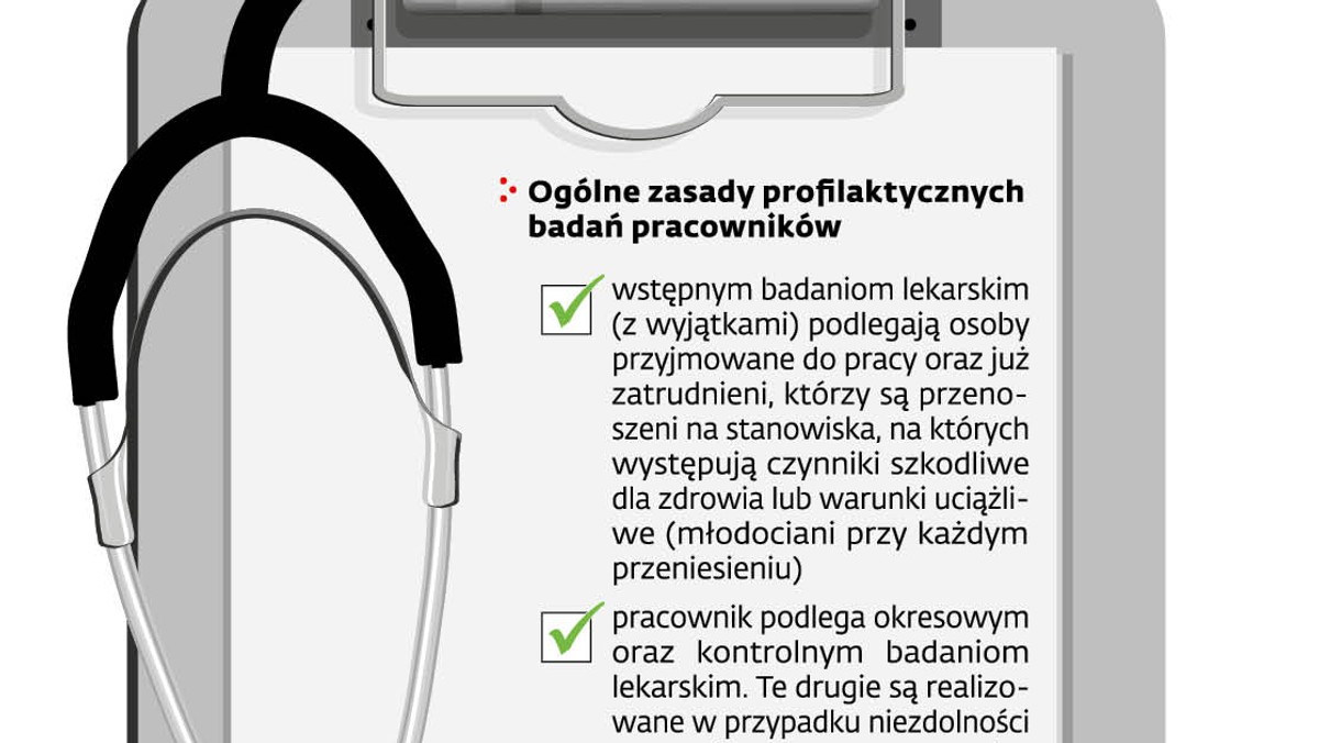 Kodeks pracy określa, kiedy pracownik musi zgłosić się na okresowe badania: przed rozpoczęciem nowej pracy; po zmianie stanowiska; po zmianie charakteru stanowiska; przed zakończeniem ważności . . .