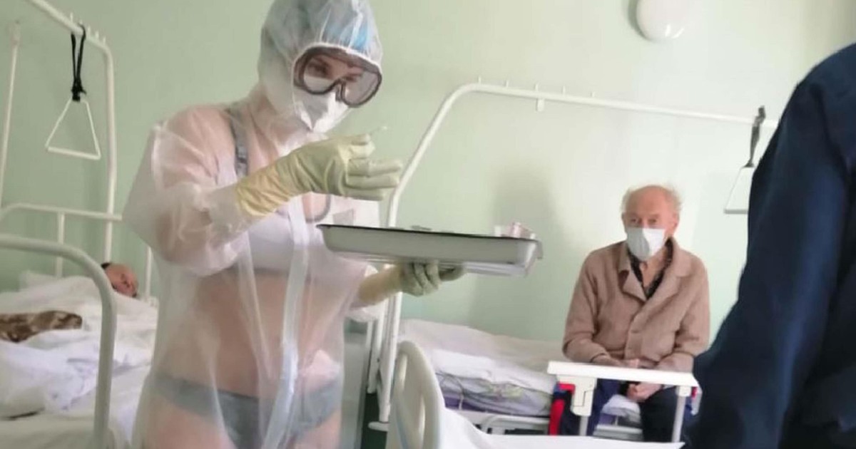 Ruda w stroju pielęgniarki