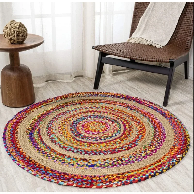 Rug 100% Natural Cotton & Jute Braided Style Carpet Rustic Modern Look Rag Rugs - Купить с бесплатной доставкой