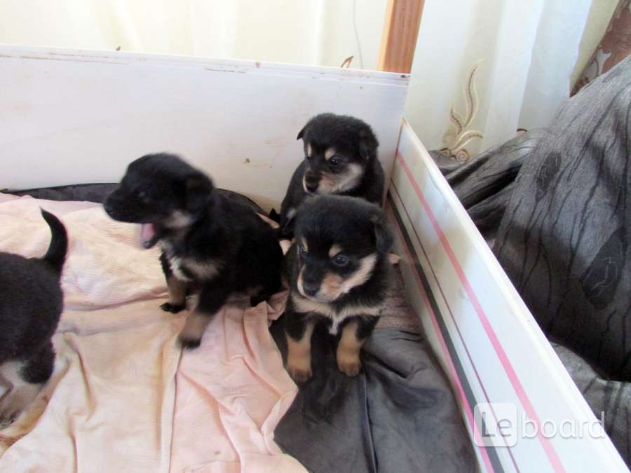Щенки в хорошие руки Щенки 3 девочки и 1 мальчик (на фото черный с рыжими лапками) ищут заботливых хозяев: возраст - 3,5 мес ., мама-собака среднего роста .