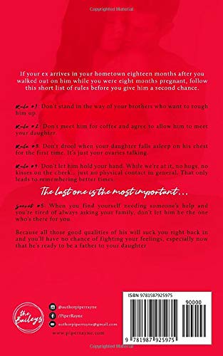 If your ex arrives in your hometown eighteen months after you walked out on him while you were eight months pregnant, follow this short list of rules before you give him a second chance . Rule #1 - Don't stand in the way of your brothers who want to rough him up . Rule #2 - Don't meet him for coffee and agree to allow him to meet your daughter .