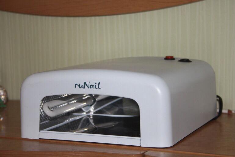 Сушка гель-лака осуществлялась при помощи УФ-лампы «ruNile». С внешней стороны лампа пластиковая, внутри - зеркала и уф-лампы. На верхней части корпуса расположена 2 кнопки – черно и красного цвета. Черная кнопка включает прибор, а так...