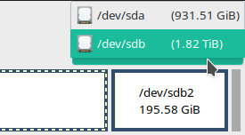 Firstly, connect your external drive to your computer and open GParted. If you do not see your external drive, which is usually named /dev/sdb, try refreshing the device's list from the top left corner: GParted > Refresh Devices .