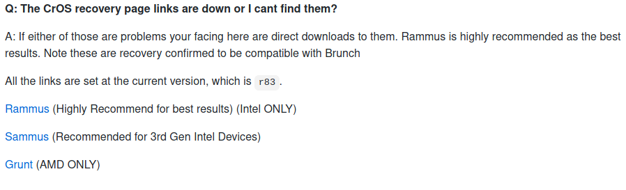 - "rammus" is the recommended image for devices with 4th generation Intel CPU and newer.