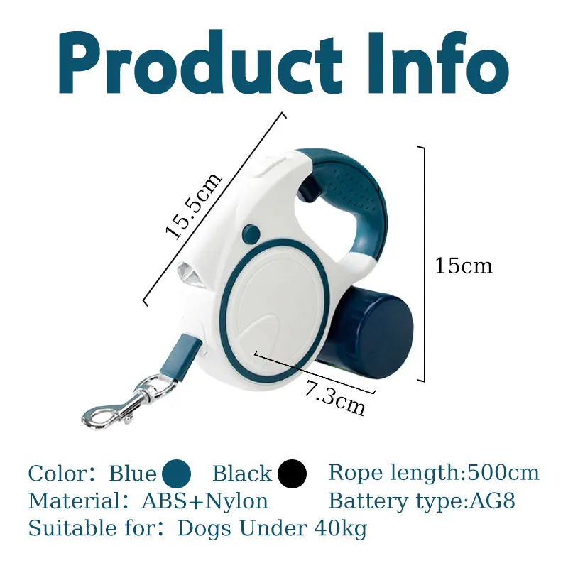 Running Dog Leash Retractable 3 In 1 Pet Lead Heavy Duty With Flashlight Waste Bag Box Auto-Lock Quick Release Dogs Training - Купить с бесплатной доставкой
