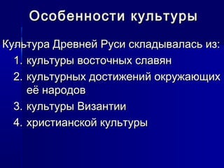 Киевская Русь в 9-12 веках, кратко о культуре, литературе . . .