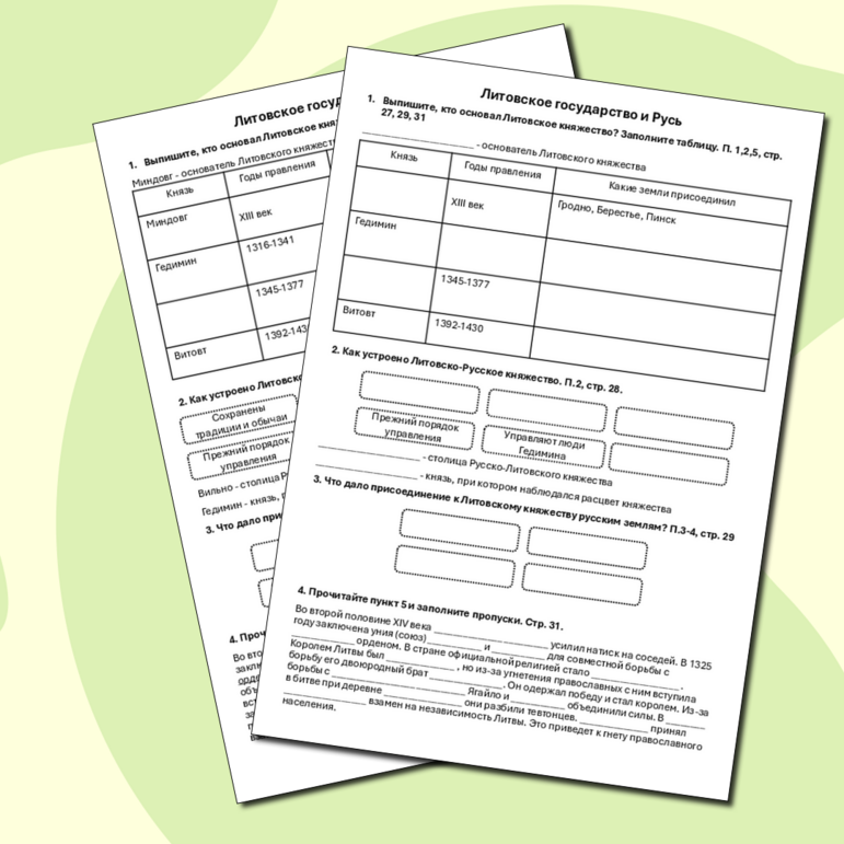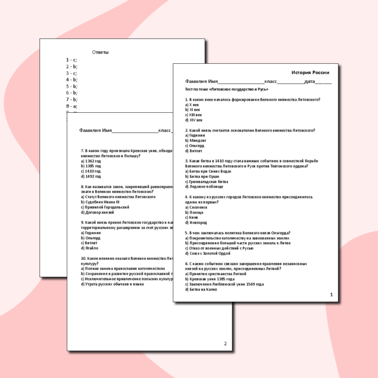 Русь и литва тест