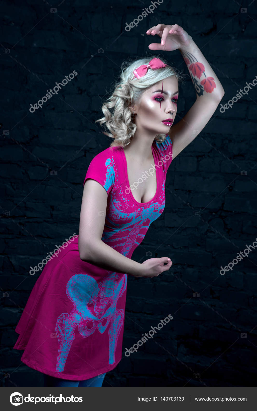 Wonderful russian blond trans Katy in ebony tights