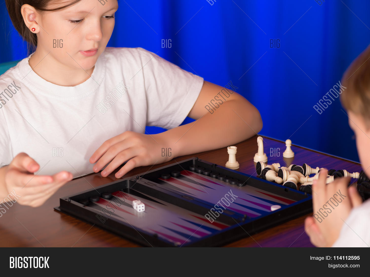 Russian girl Nastya and her classmate playing backgammon