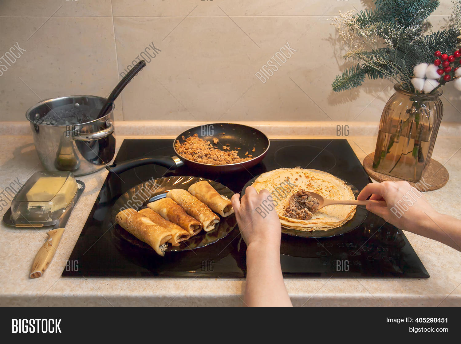 Anny Aurora gets a special ingredient for salad from chief Rob Diesel