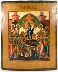 Icons are in strict Byzantine- or traditional Russian-style . For full or partial Church Iconography, large Icons can be produced on canvas and permanently applied to Church walls and ceilings . Our Icon studio has a well-known reputation for the beauty and refined artistic quality of its work, and this at the lowest prices available .