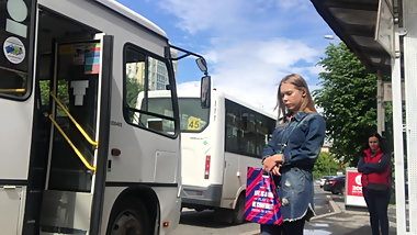 Russische Babe Lindsey wird in den Bus gefickt