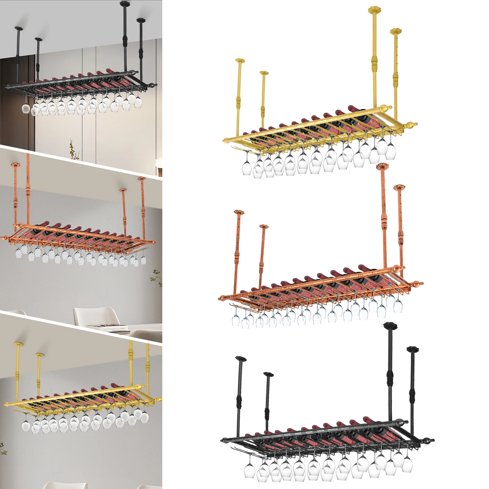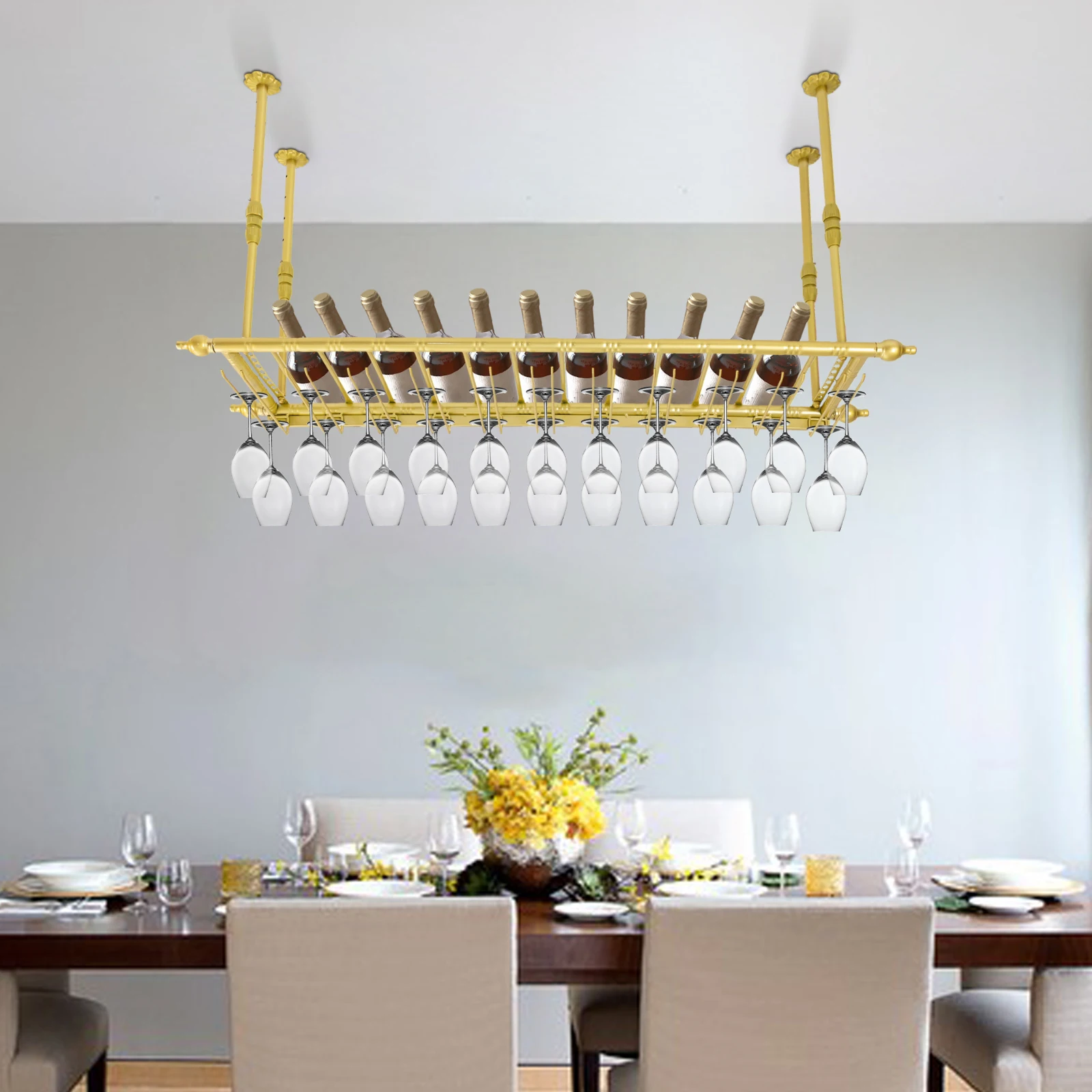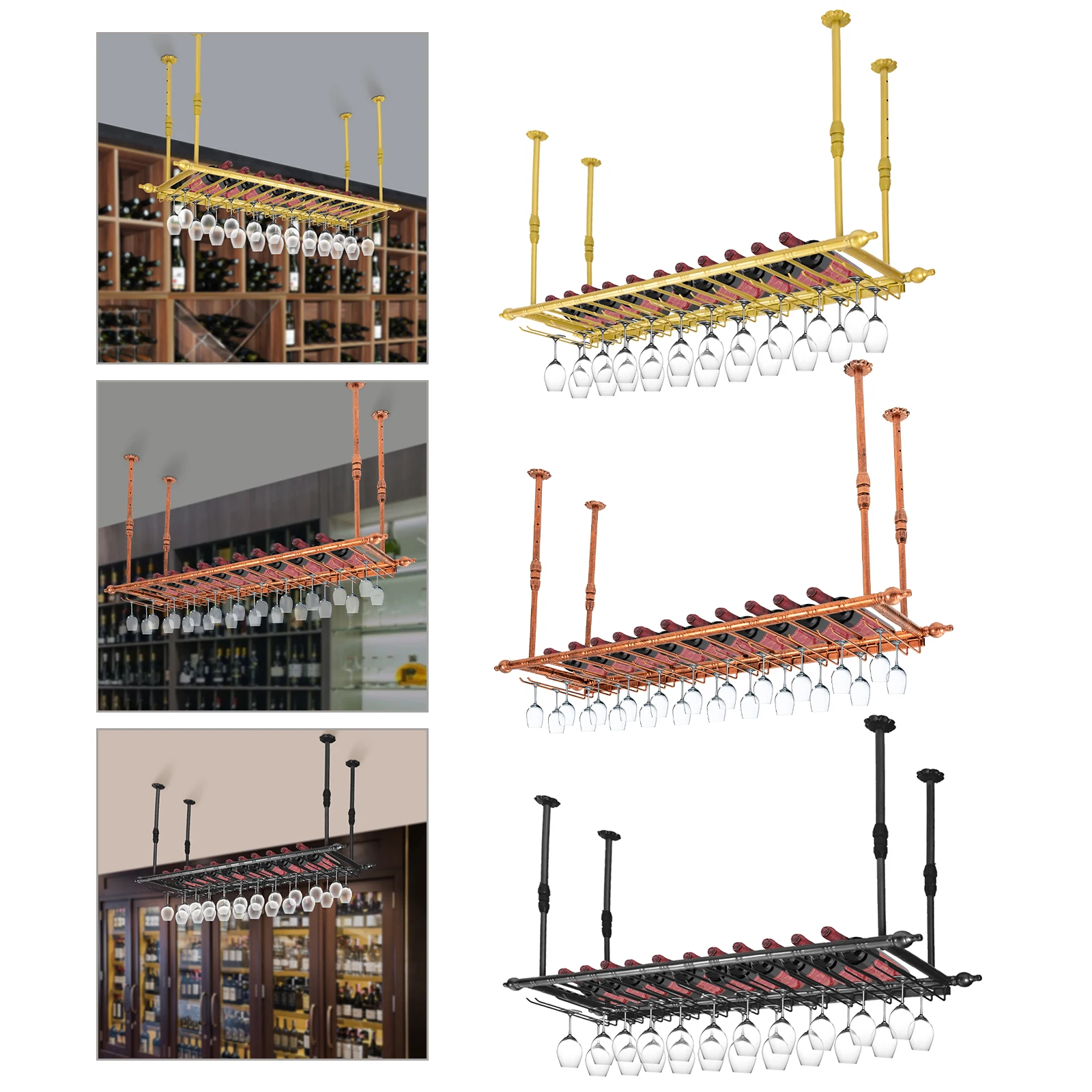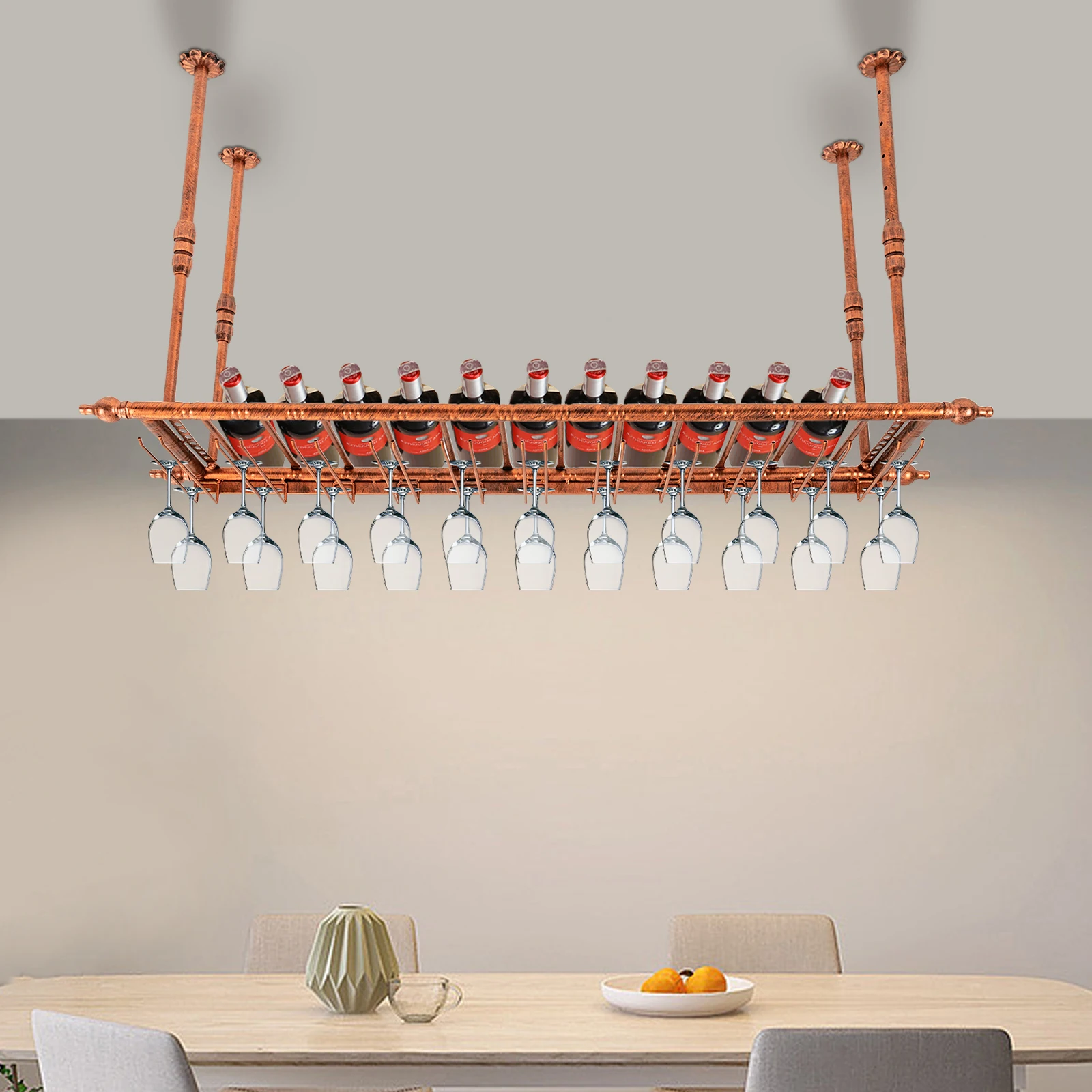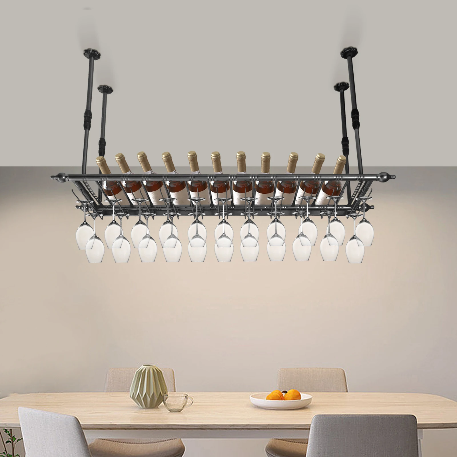 Rustic Wine Rack Wall Mounted with Glass Holder Adjustable Hanging Bar Wine Glass Rack Ceiling 47.2in Bottle Holder Wine Shelf - Купить с бесплатной доставкой