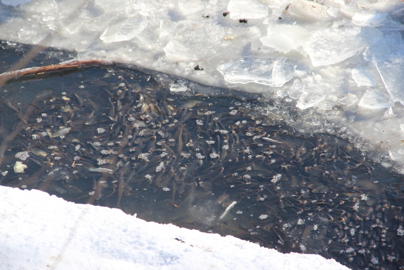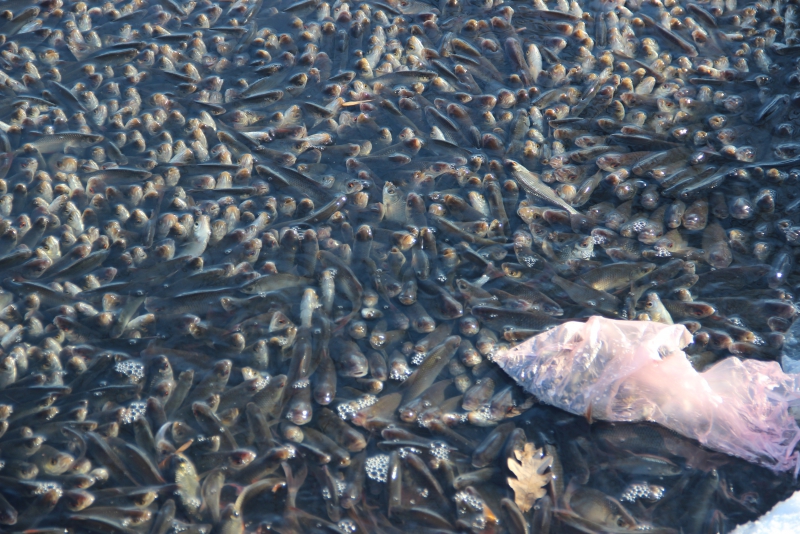Рыба задохнулась в пруду