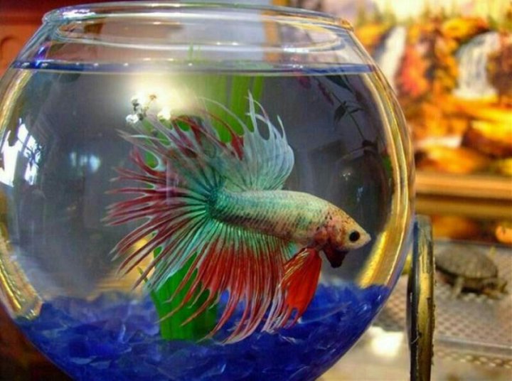 Очень часто по телевизору можно увидеть такие кадры — в руках ребёнка или где-то на столе в комнате находится маленький круглый аквариум, а в нём сидит большая золотая рыбка . Вернее вуалехвост . Такие кадры я видел и в рекламе, и в фильмах . Но так бывает только в кино .