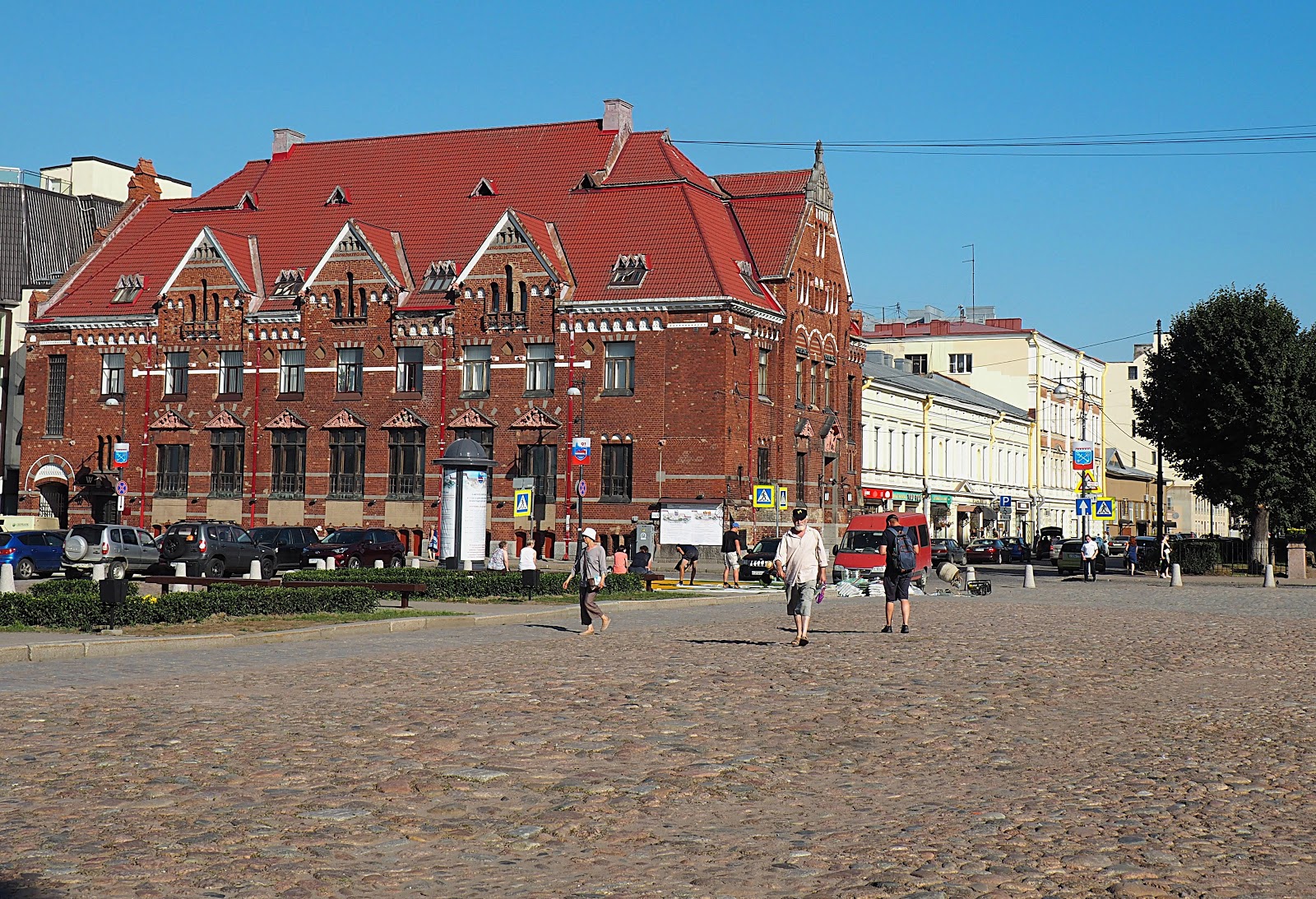 Рыночная площадь Выборга - это место, где встречаются центральная и средневековая части города . Здесь перемешались древность и современность, стили и формы, туризм и бизнес . Понравилась архитектура дома из красного кирпича .