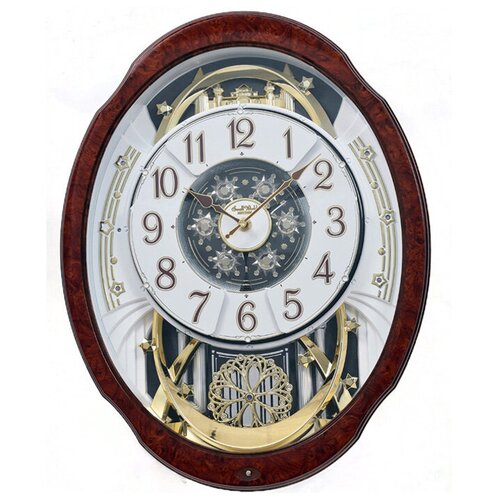 Horloge murale à quartz japonaise Rhythm 4MH412WU23. Horloge murale à quartz. Aiguilles centrales des heures et des minutes. Cadran blanc. Chiffres arabes. Le corps est en bois. La montre est décorée de cristaux Swarovski. Sonneries toutes les heures : 12 classiques, 12 populaires et 6 de Noël. Lors de la lecture d'une mélodie, le cadran est divisé en deux sections. Éteignez automatiquement la mélodie dans l'obscurité. Réglage du volume.Rythme 4MH412WU23 Horloge murale musicale à quartz merveilleuse en grain de bois. Ce modèle fonctionne avec des piles de type C x 2 pièces. (inclus dans le kit). Mélodie horaire. Au fur et à mesure que la mélodie joue, le cadran se divise en 6 sections, affichant des panneaux blancs avec des notes dorées. A ce moment, les indicateurs LED clignotent. Le pendule en forme de fleur au bas de l'horloge tourne constamment et est décoré de 17 cristaux Swarovski. Sonneries 12+12 classiques +6 mélodies de Noël (son CTS). Contrôle du volume. Mode démonstration. Changement de mélodie automatique dans l'obscurité avec capteur tactile. Le déplacement de la flèche est fluide (silencieux).