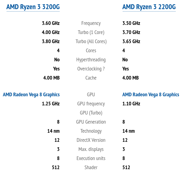 Ryzen 3200g сравнение