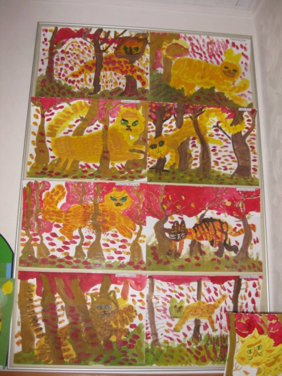 Детские рисунки рыжих котов . Картинки, нарисованные цветными карандашами, акварелью или гуашью . Простые срисовки с рыжими кошками .