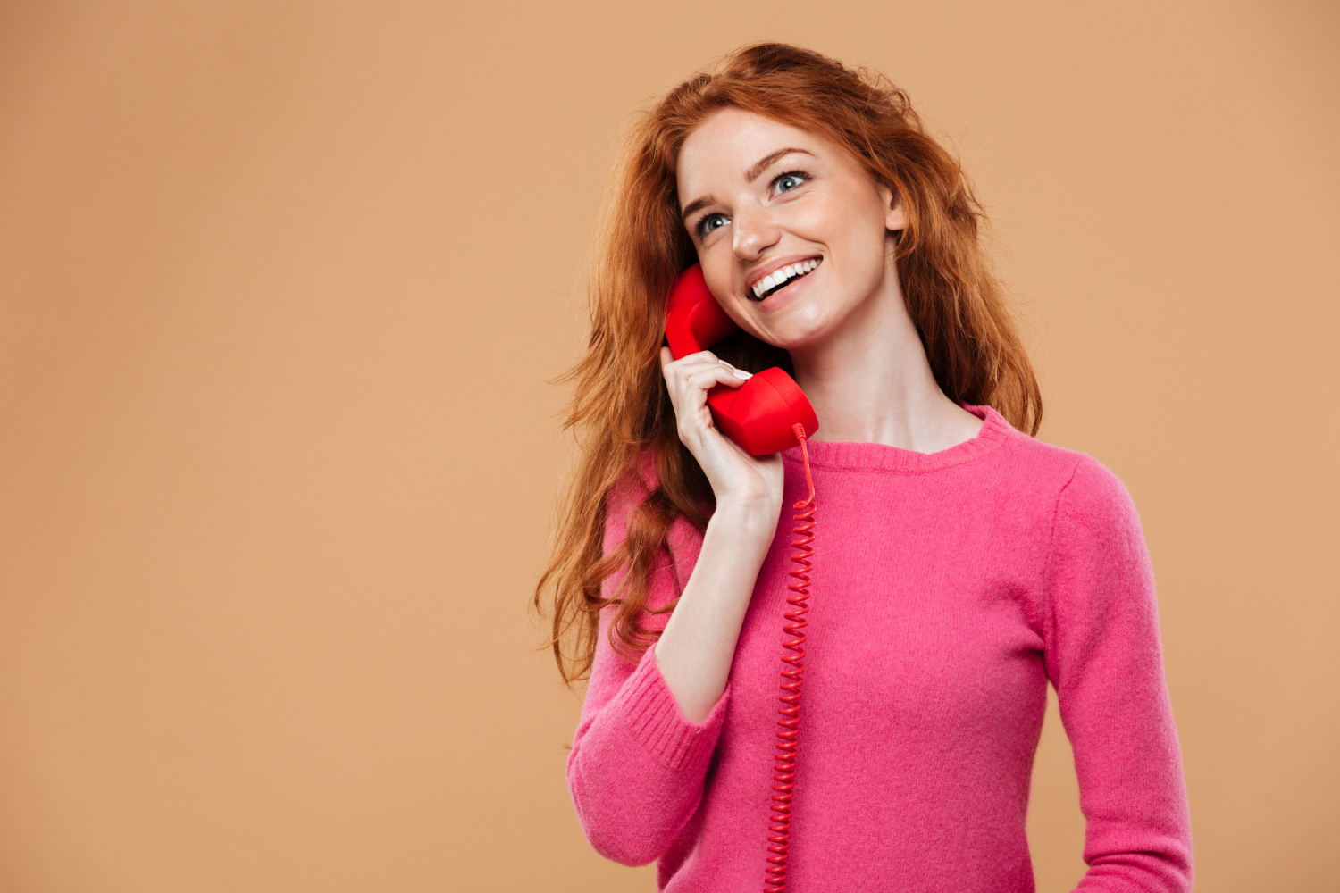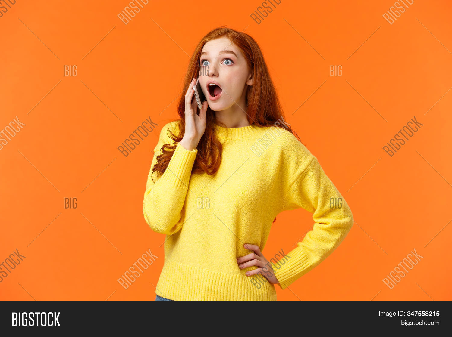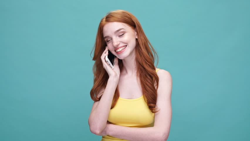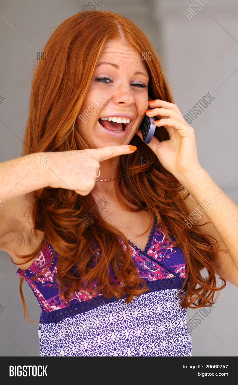 Рыжая девушка говорит 102 фотографий