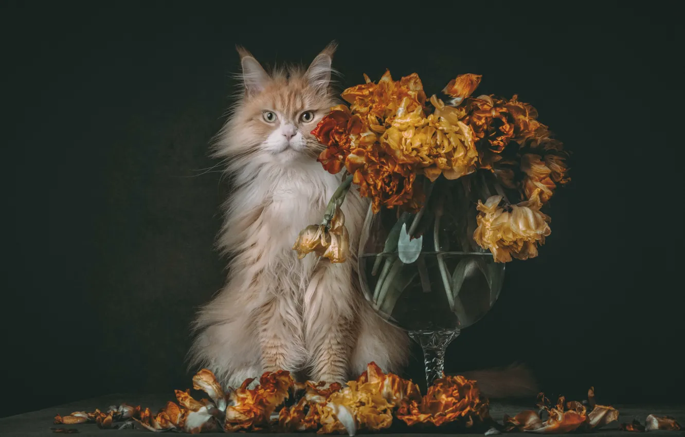 Рыжие кошки с цветами 50 фотографий
