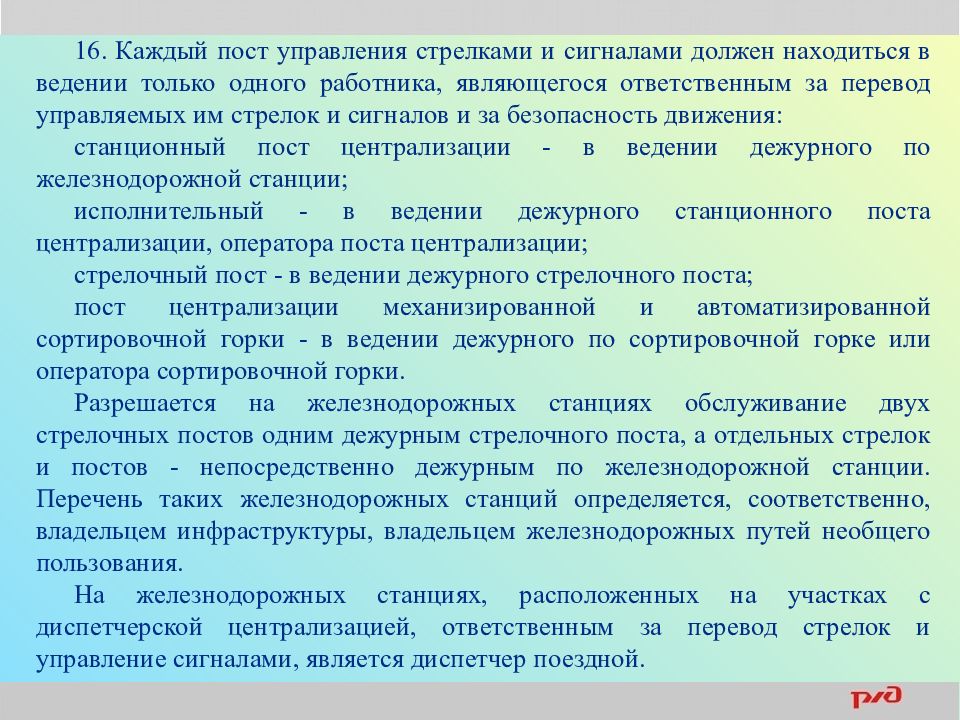 Ржд дежурный стрелочного поста