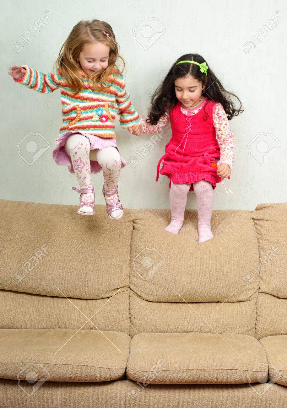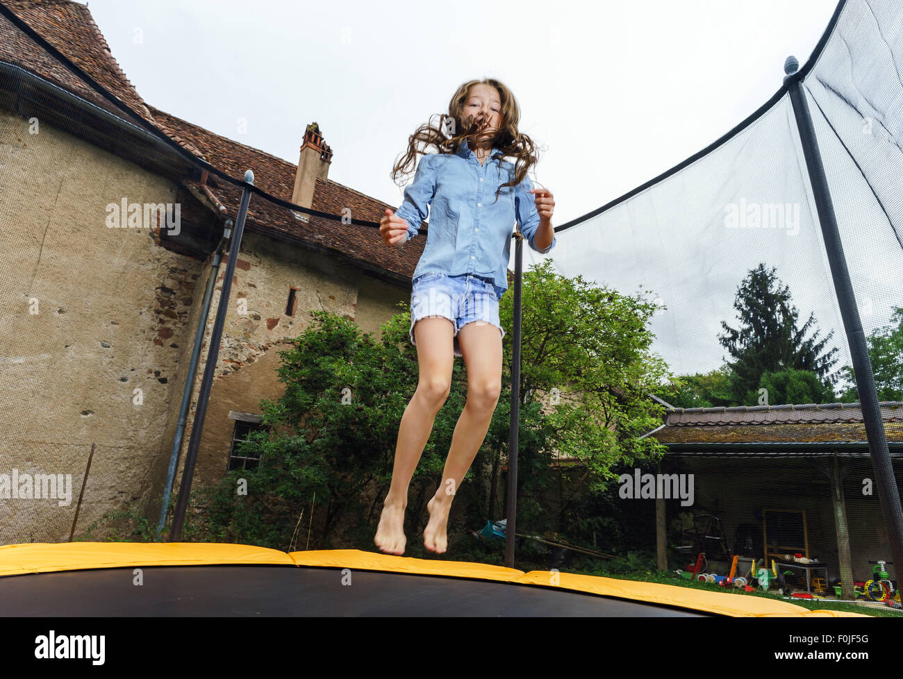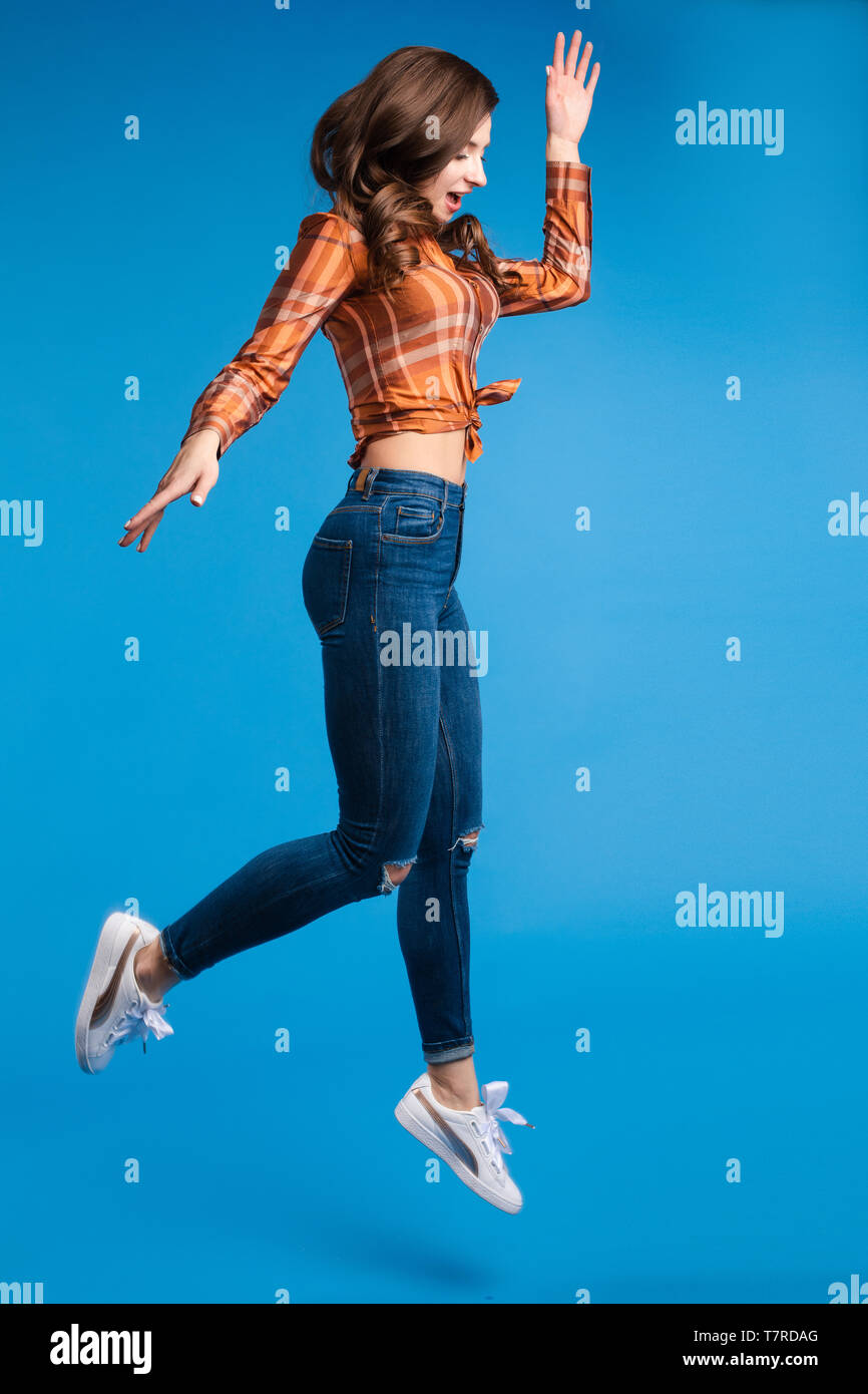 Süße Teenagerin springt auf