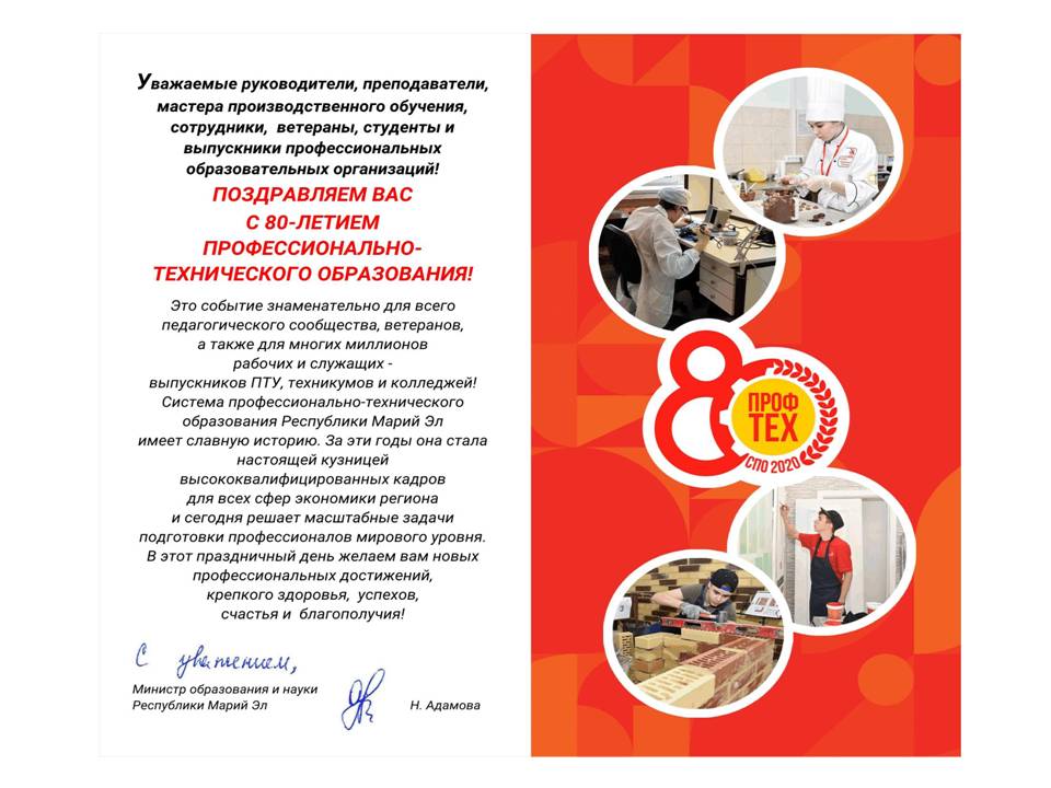 Поздравление с 80-летием системы профтехобразования