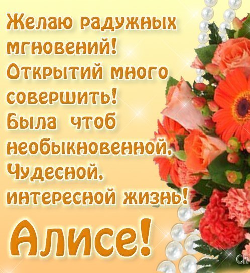 красивые, прикольные, оригинальные картинки и открытки с поздравлениями и пожеланиями . Эта страница будет пролистывать все открытки из Алиса . Открытки С Днем рождения по именам, а также Вы можете обратить внимание на элементы навигации по сайту, которые . . .