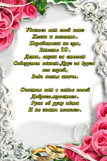 Поздравления с креповой свадьбой на 39 лет совместной жизни . . .