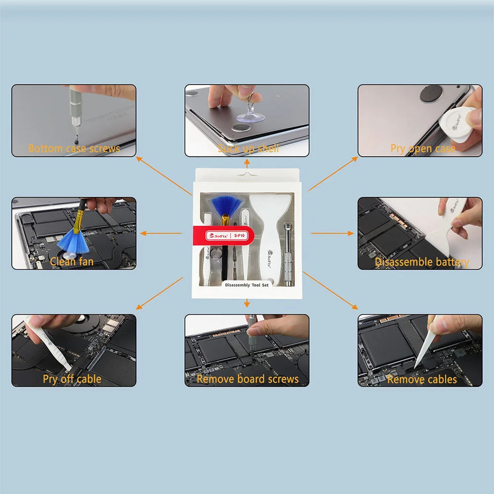 gelMLcneBIHere you can buy S-F10 Disassembly Tool Set Laptop Repair Tool Kit Clean Machine Fans Replace Battery Screws And Cable Remove For Macbook Laptop with free delivery to your post office.