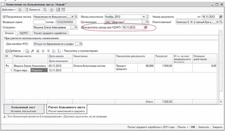 С больничного вычитается налог