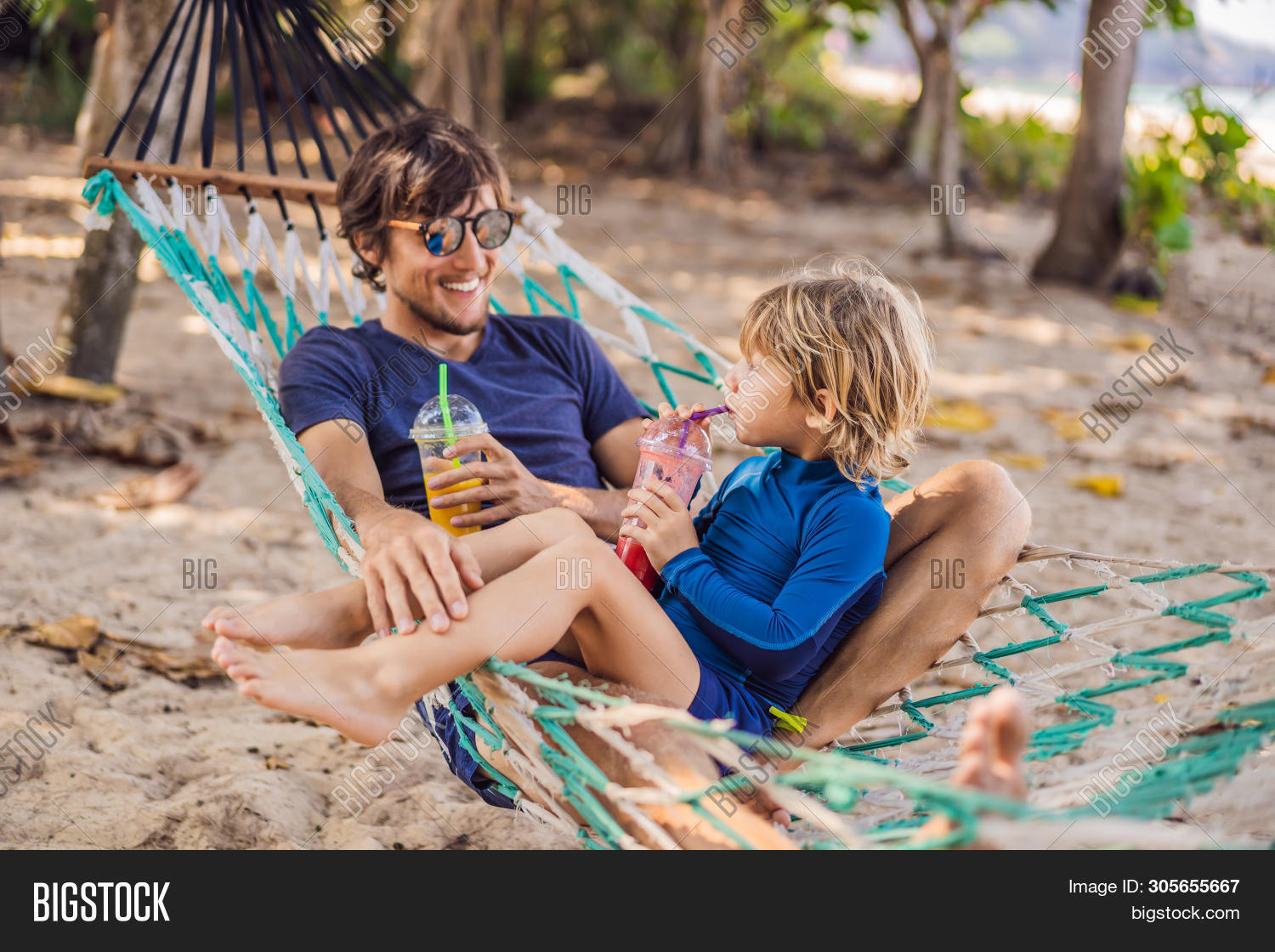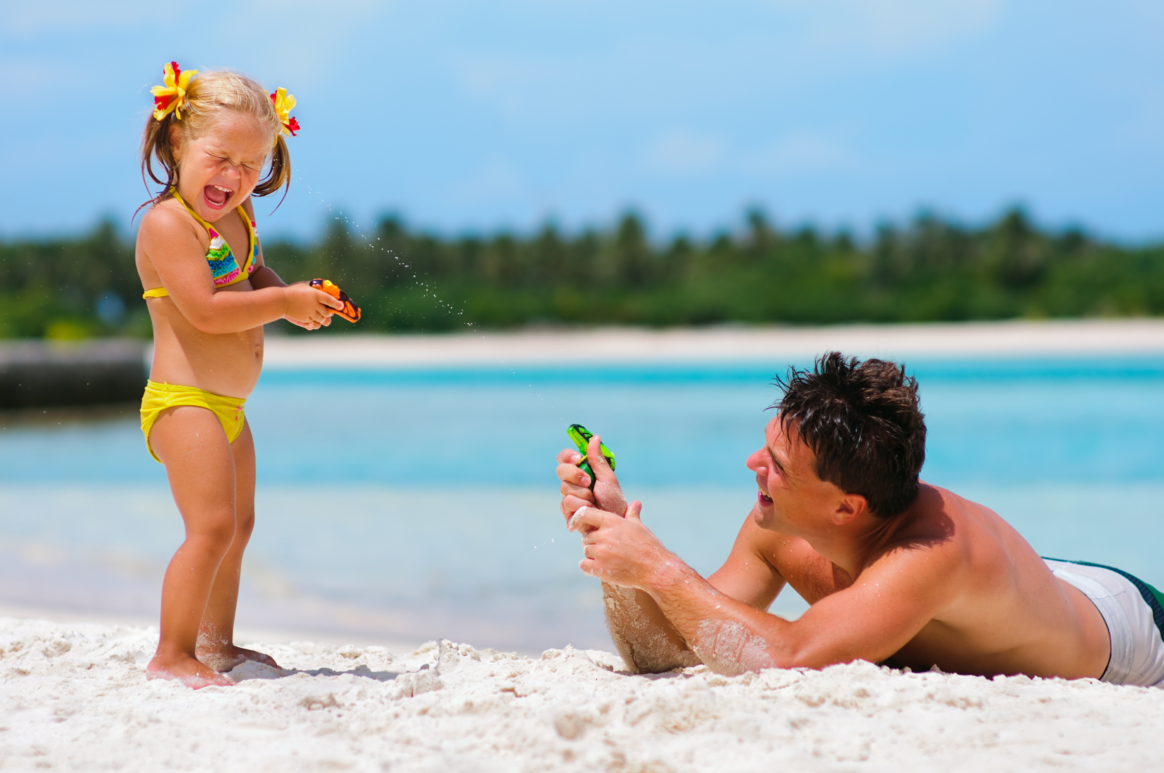 С папой загораем